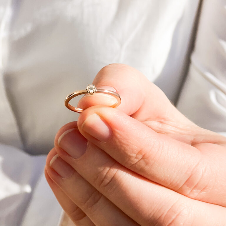 Originální zlatý prsten s diamantem. Ruční práce.