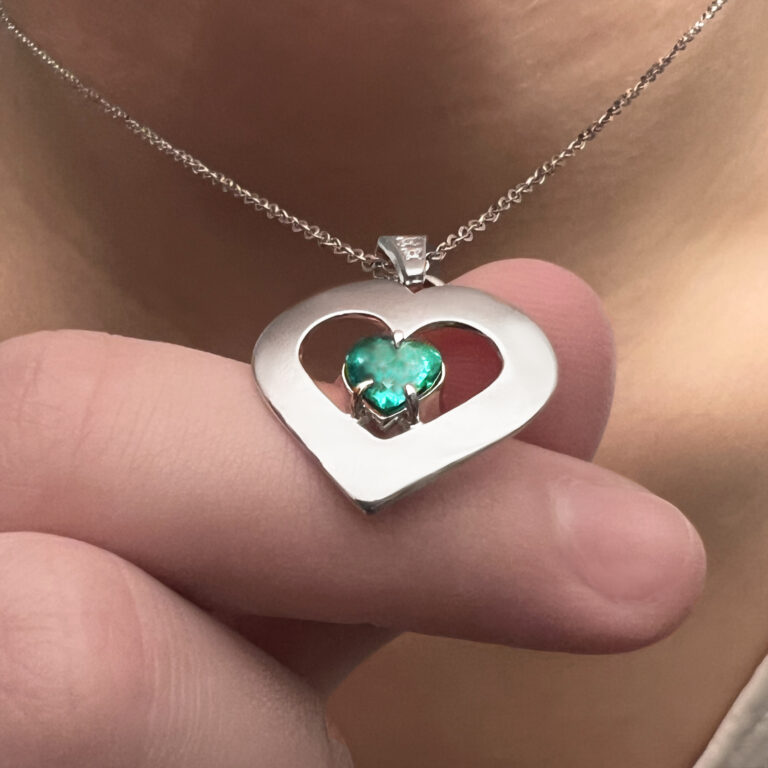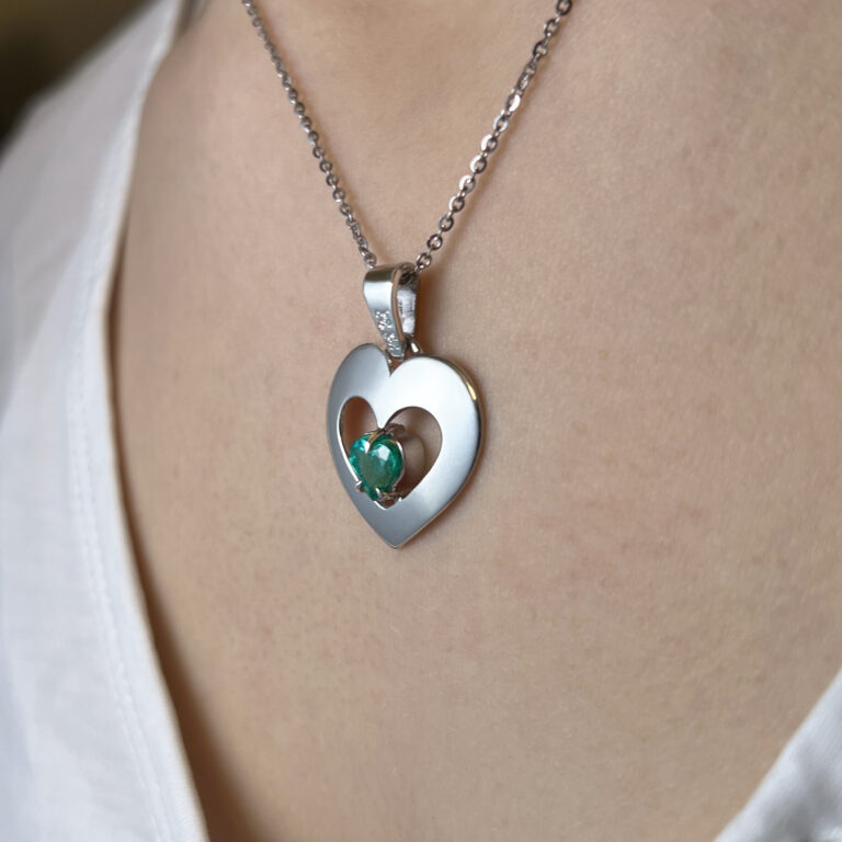 Exkluzivní náhrdelník se smaragdem ve tvaru srdce.