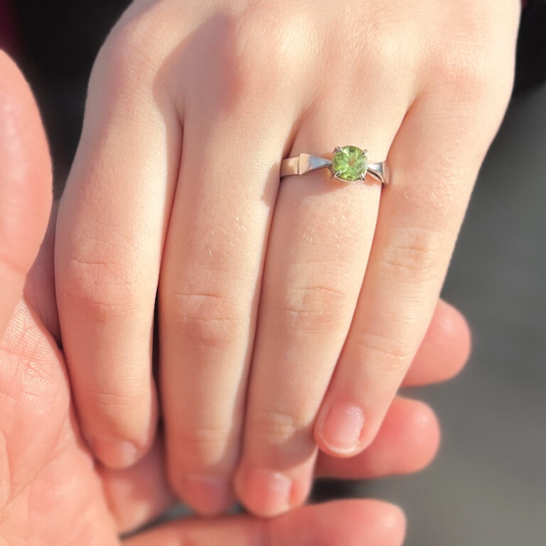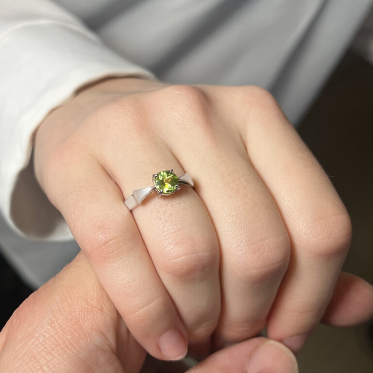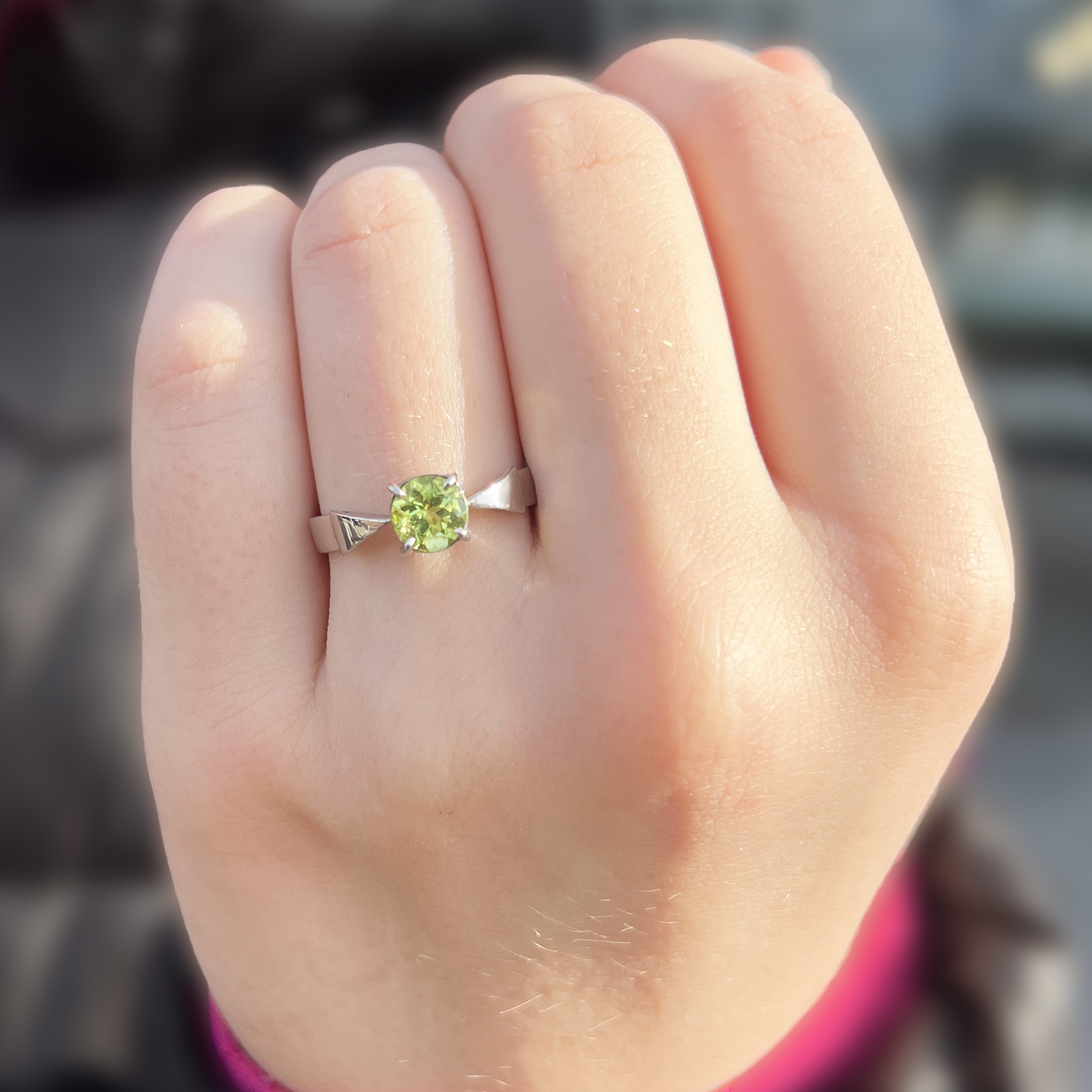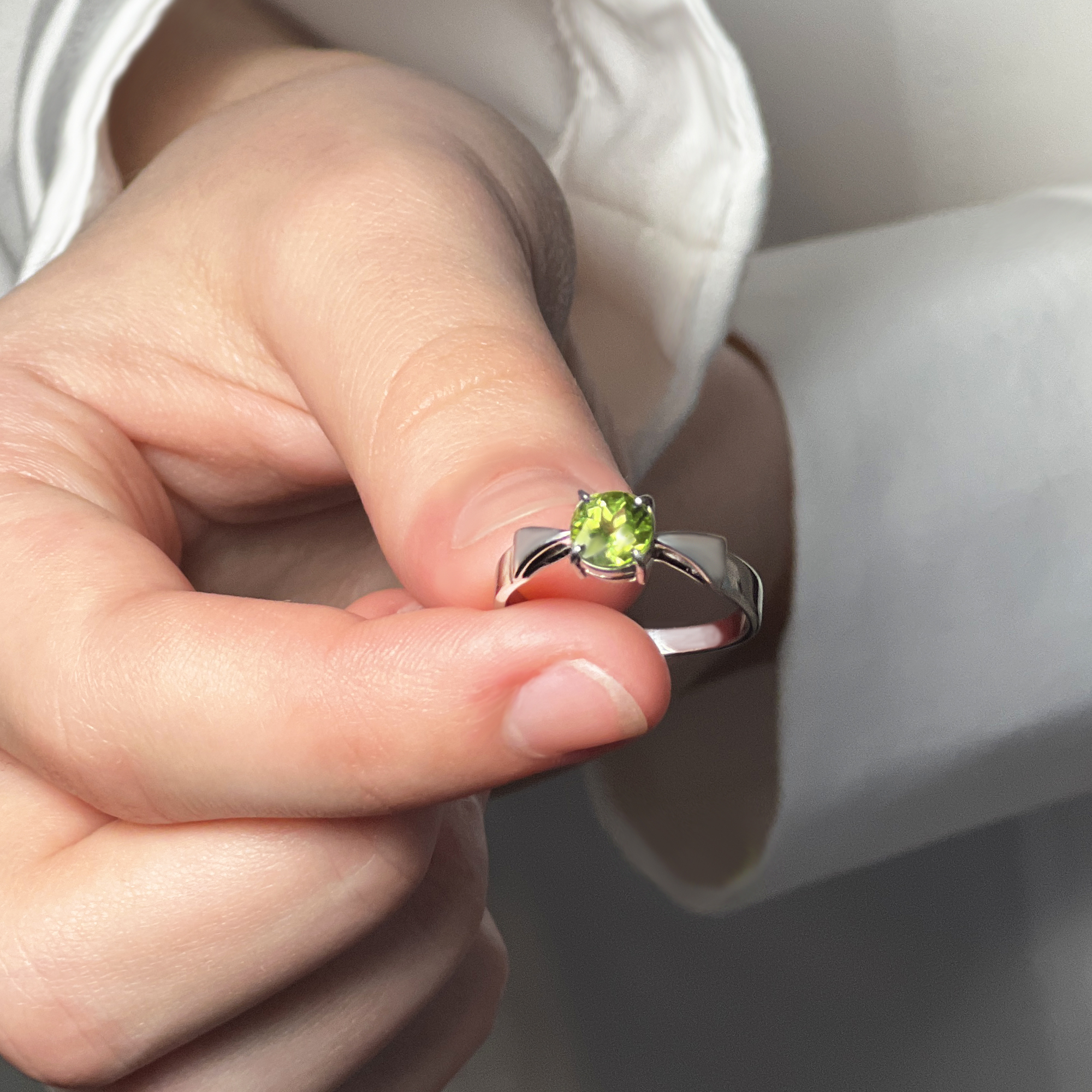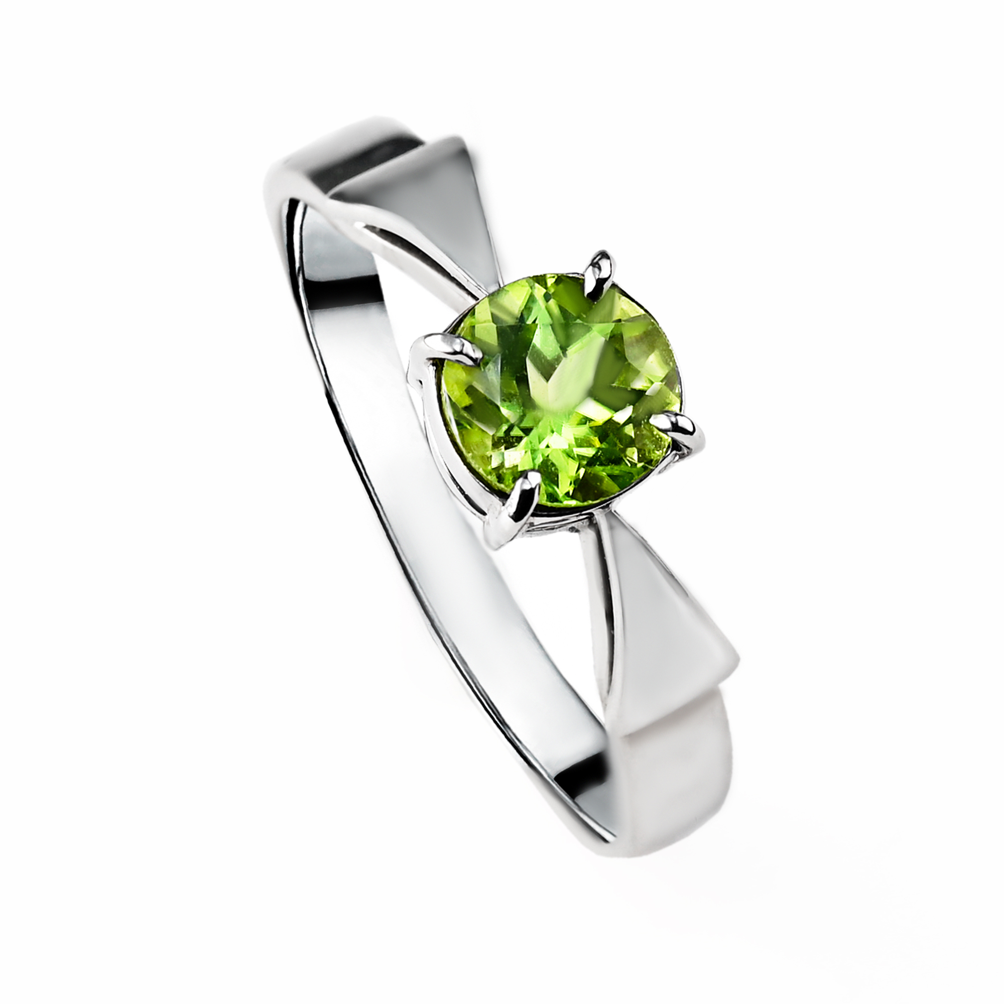 přírodní olivín v průměru 7 mm zářivé zelené barvy