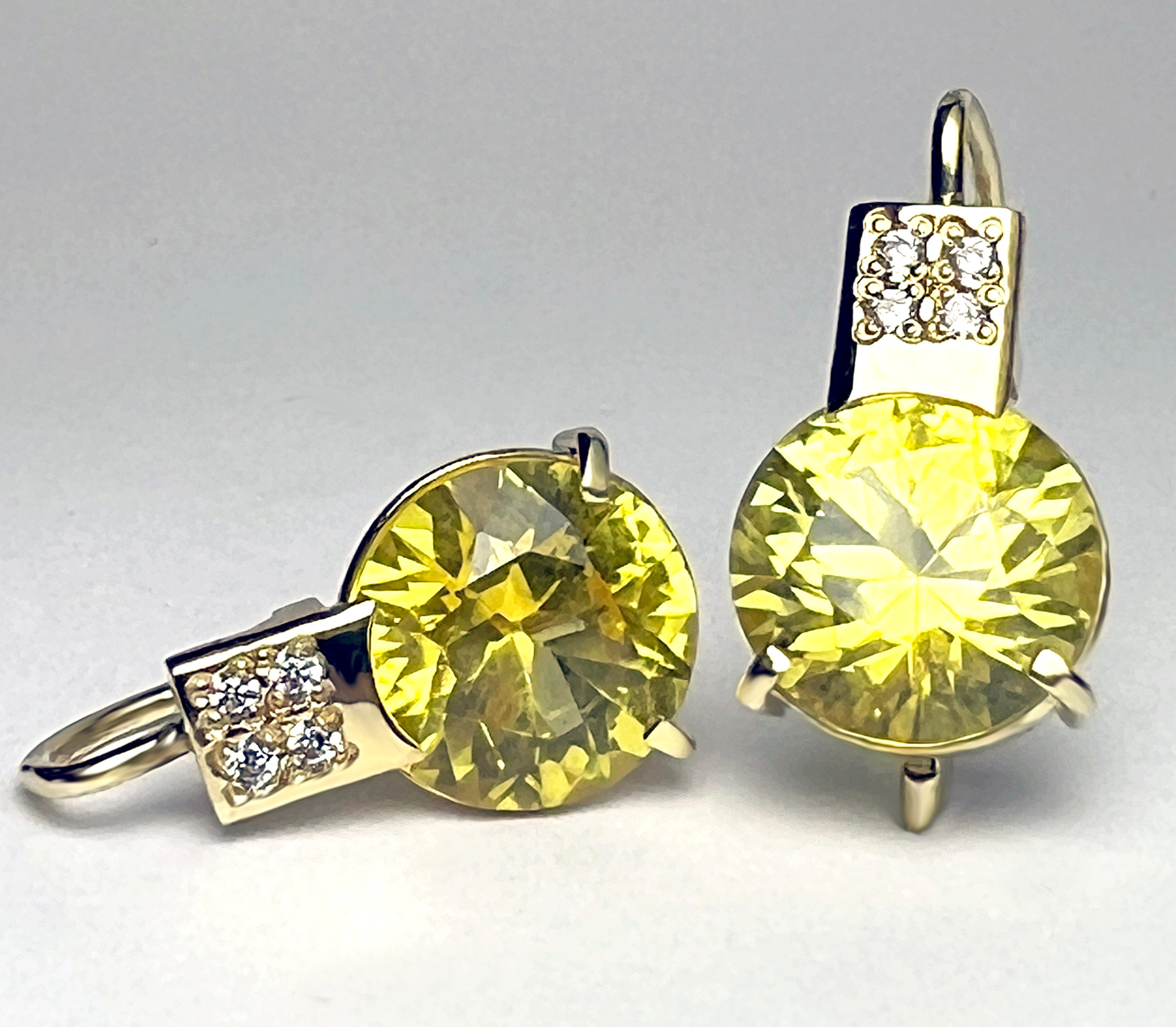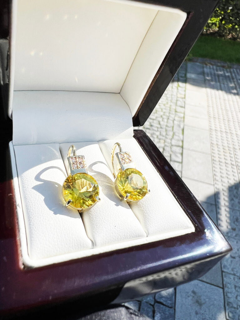 Zlaté náušnice s citríny. Ruční práce z naší zlatnické dílny.