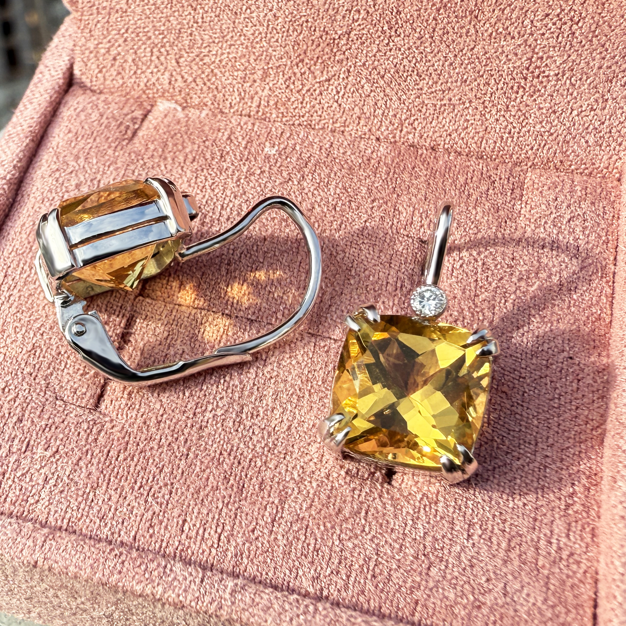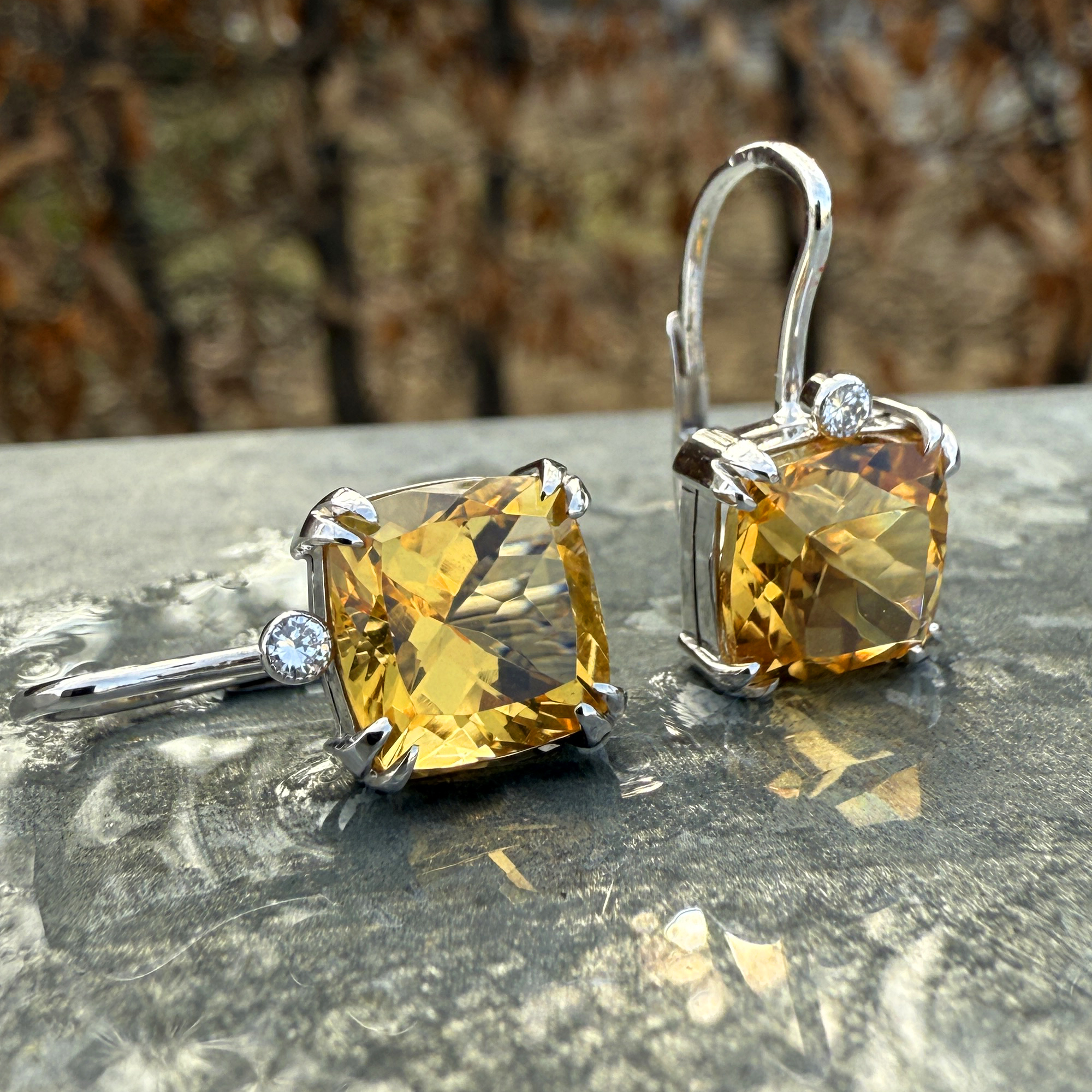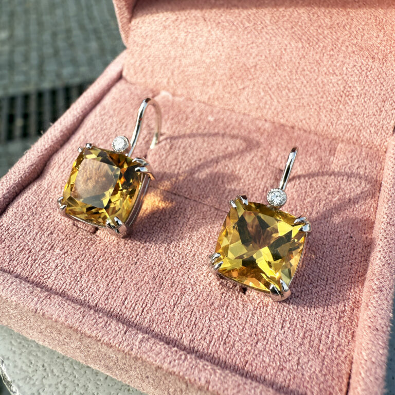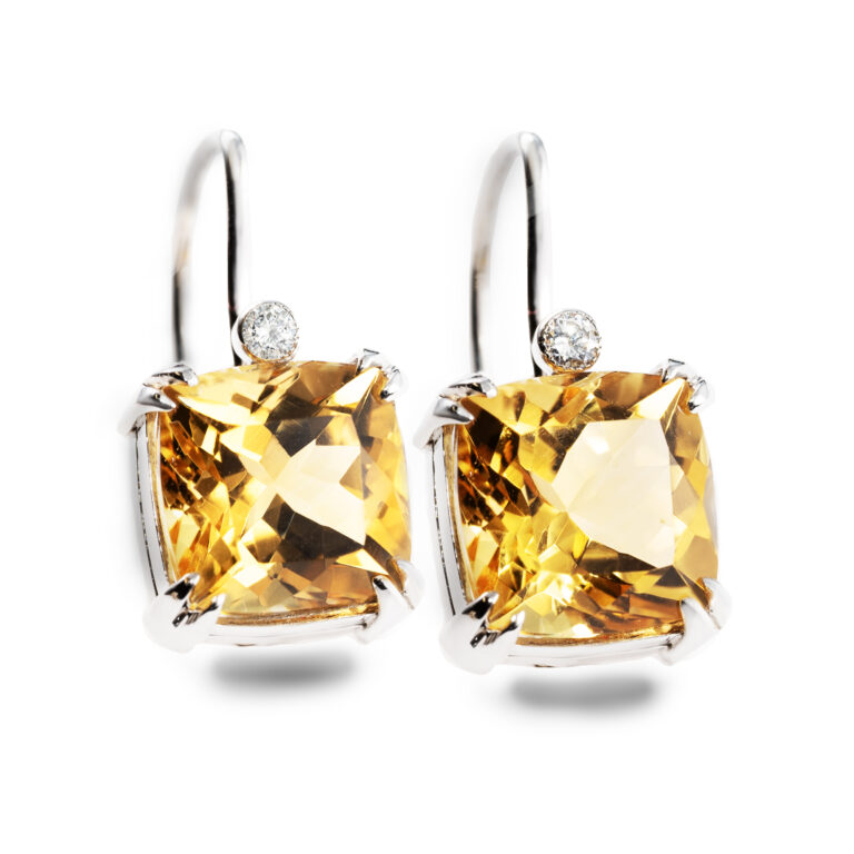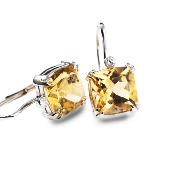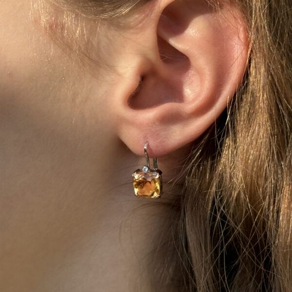 Originální zlaté náušnice s citríny a diamanty. Ruční práce z naší zlatnické dílny.