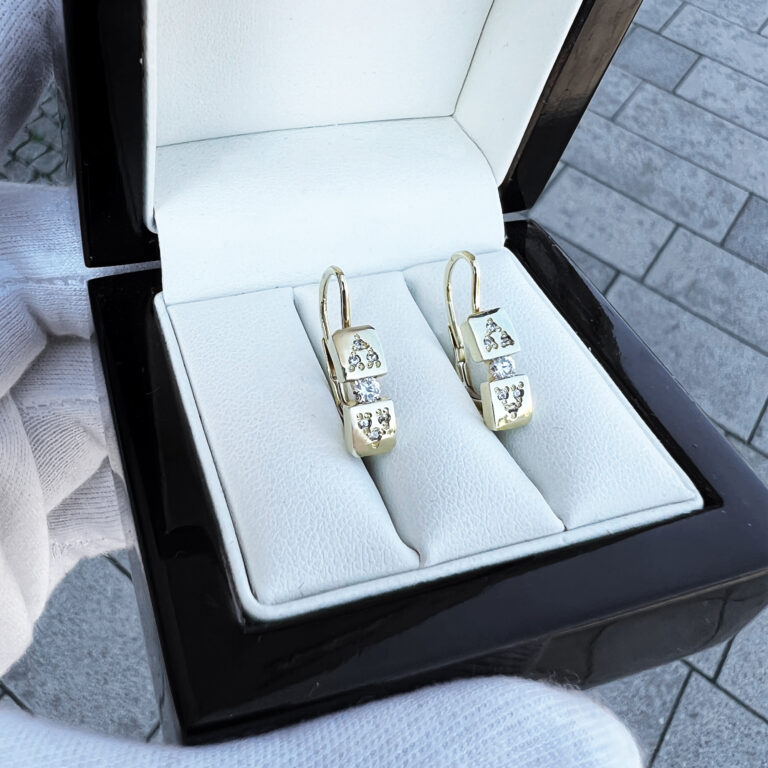 Zlaté náušnice s diamanty. Ruční práce z naší zlatnické dílny.