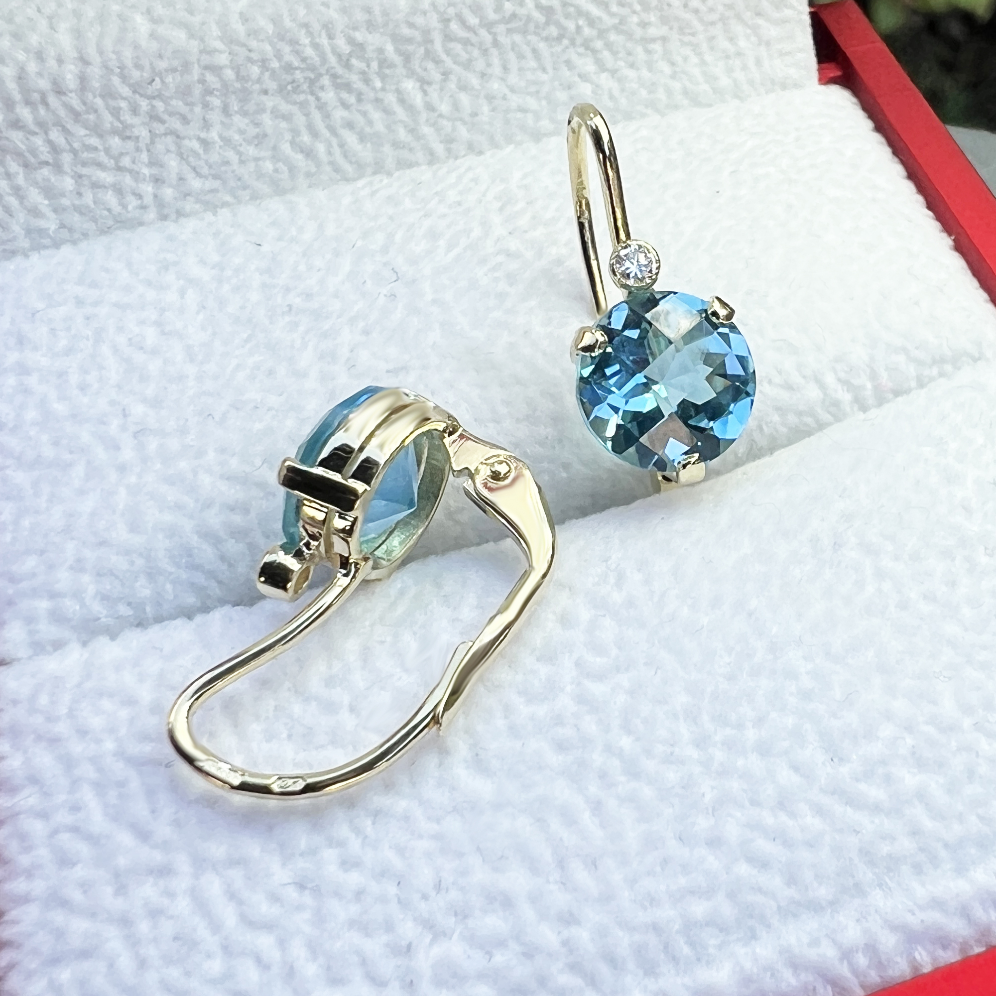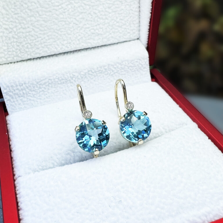 Jemné zlaté topazové náušnice. Ruční práce z naší zlatnické dílny.