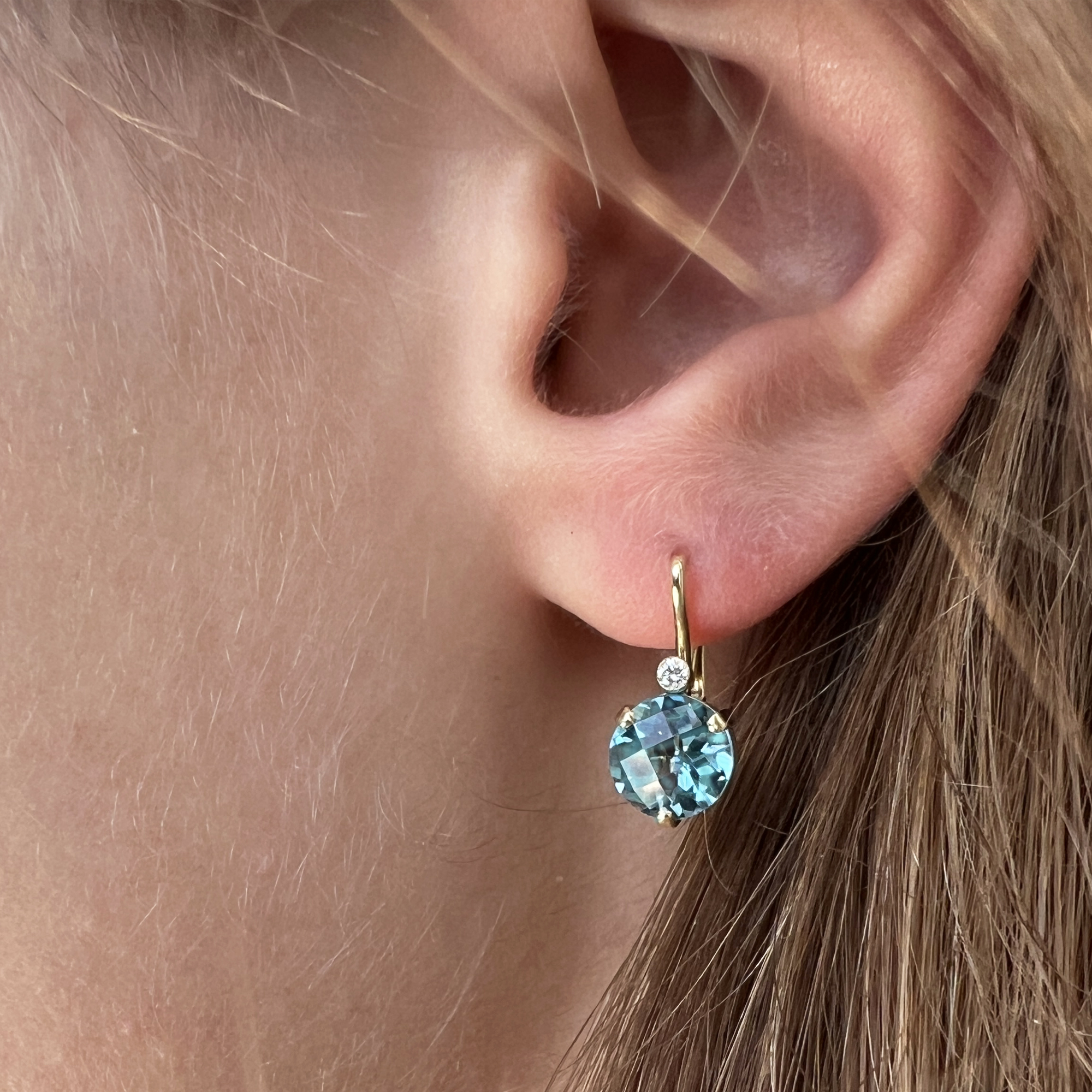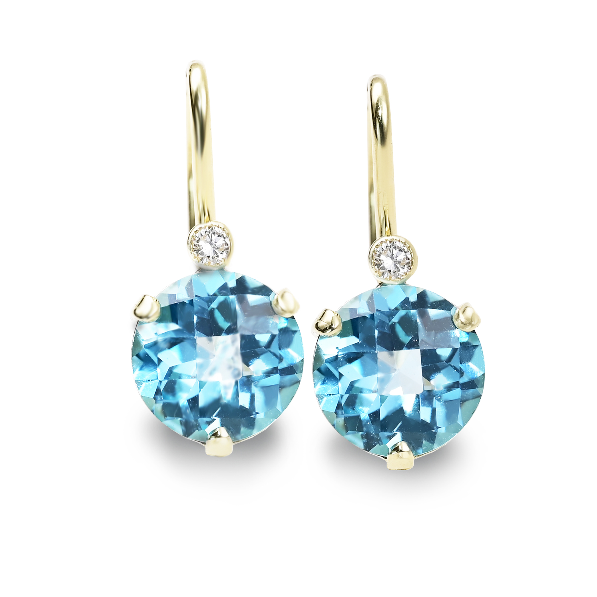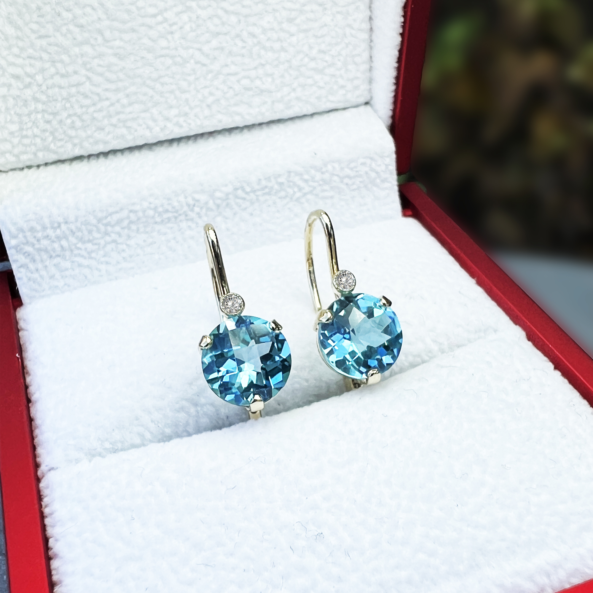 přírodní topazy v průměru 8 mm + 2 přírodní diamanty o celkové váze 0.070ct