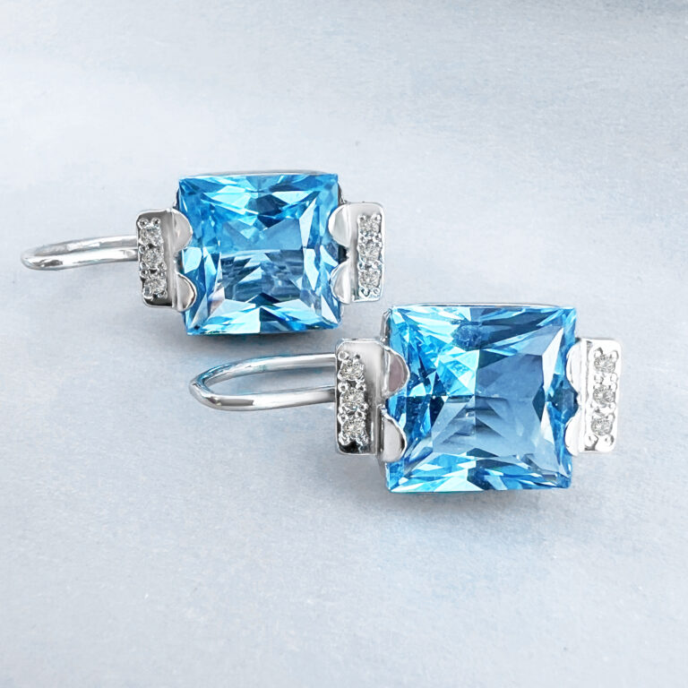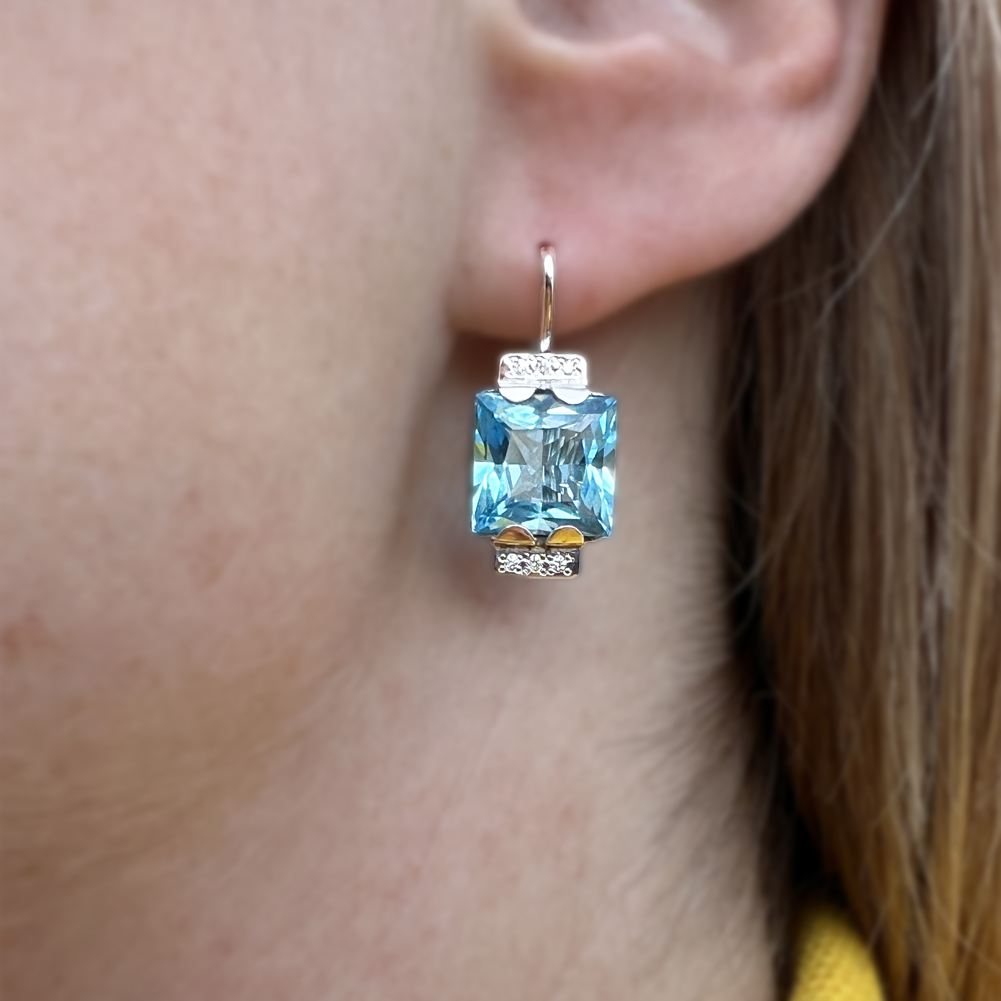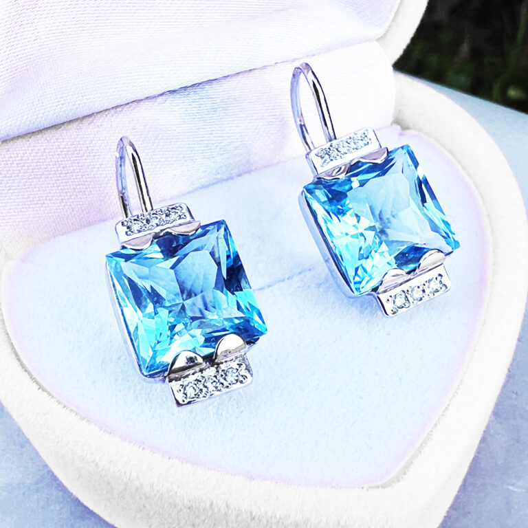 Exkluzivní zlaté náušnice s topazy a diamanty. Naše ruční práce.