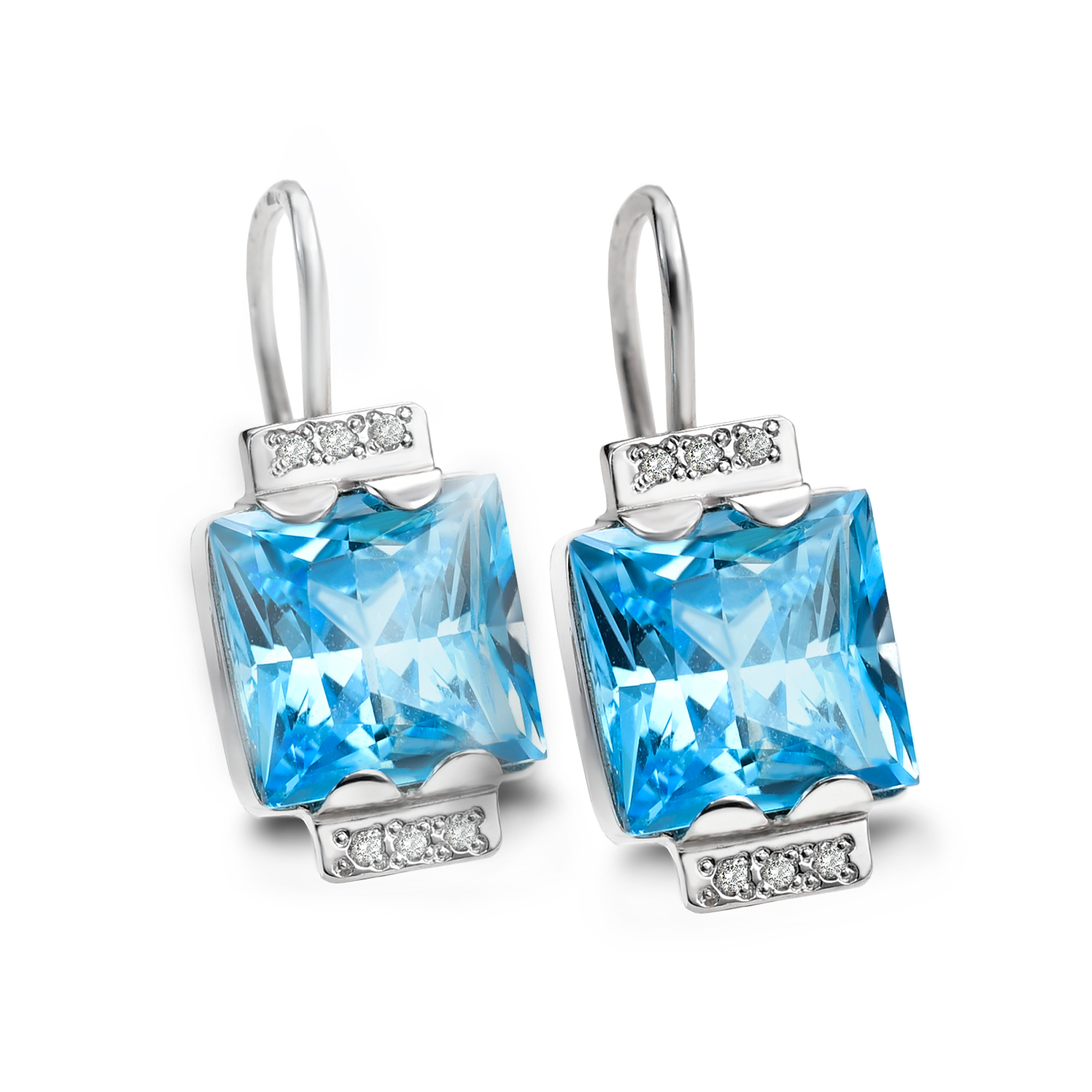 přírodní topazy v rozměru 10*10 mm + 6 přírodních diamantů o celkové váze 0.084 ct