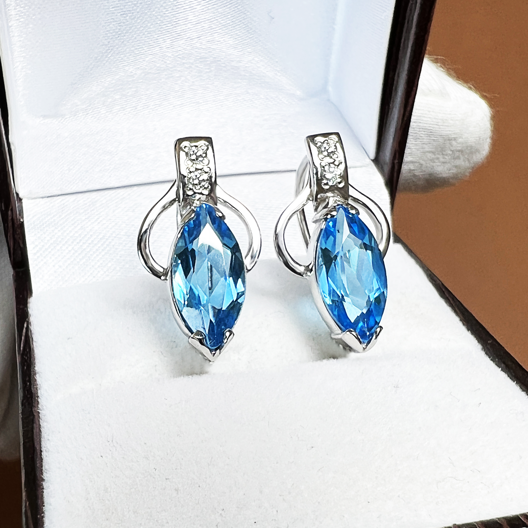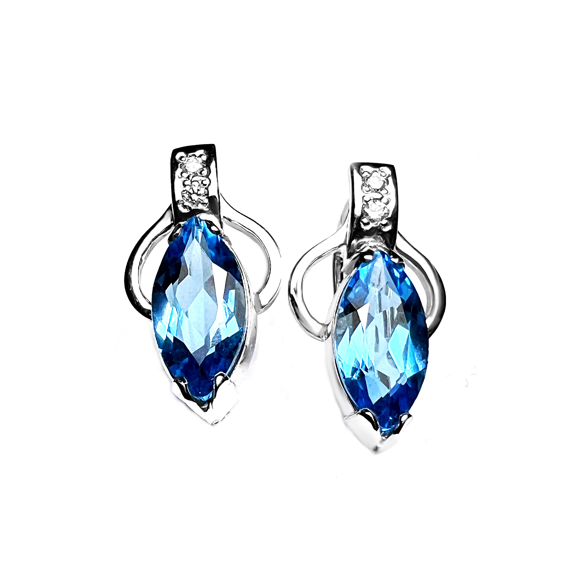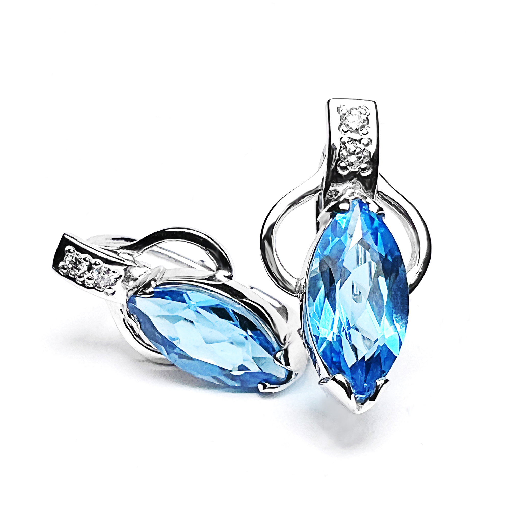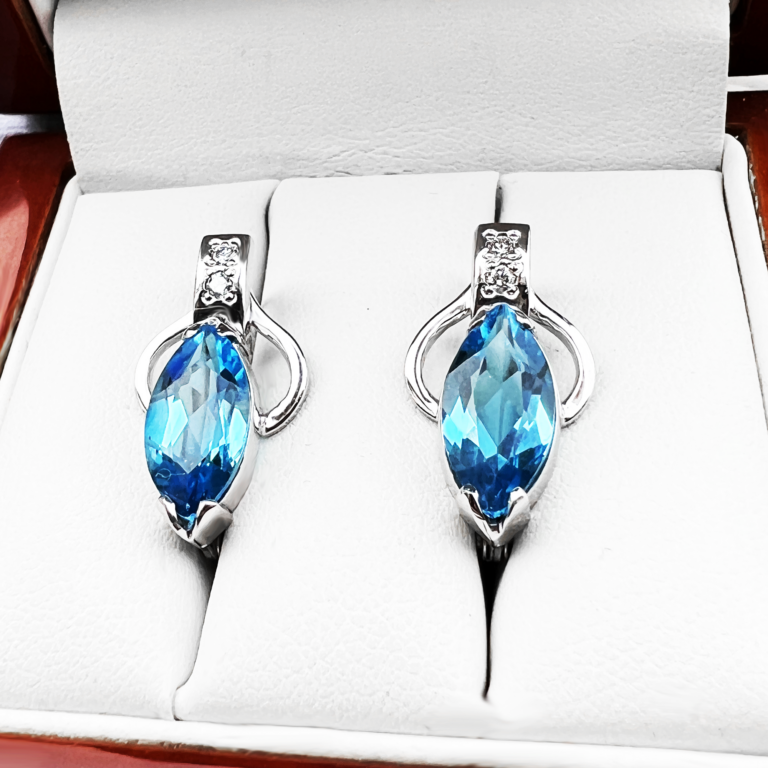 Exkluzivní zlaté náušnice s diamanty a topazy. Ruční práce z naší zlatnické dílny.