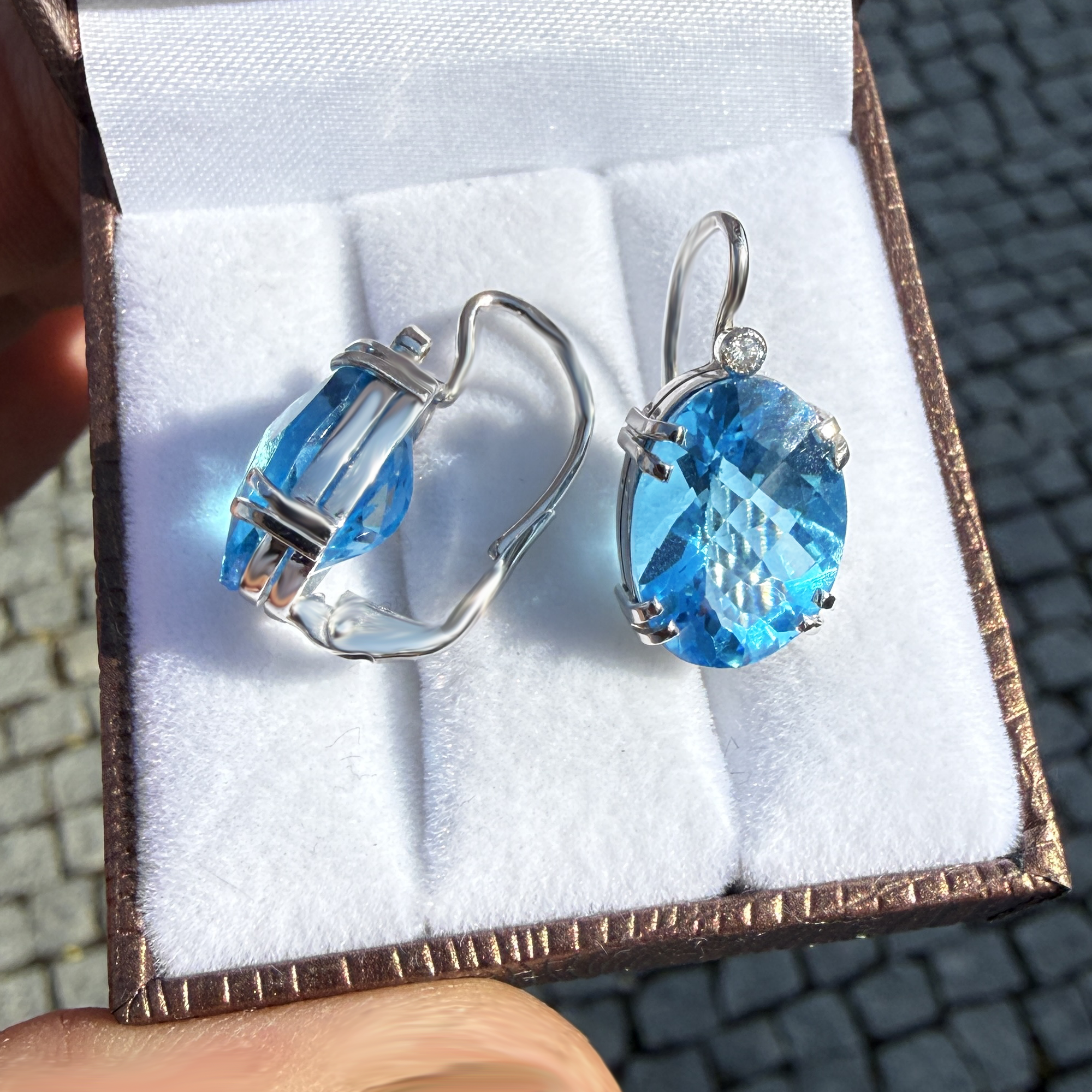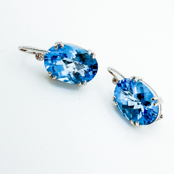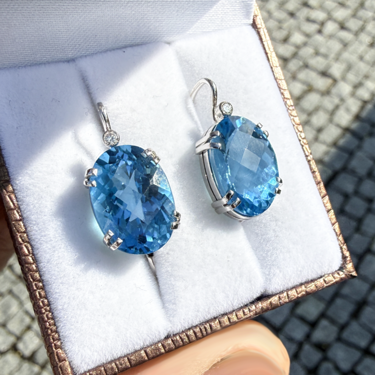Zlaté náušnice s topazy a diamanty. Ruční práce z naší zlatnické dílny