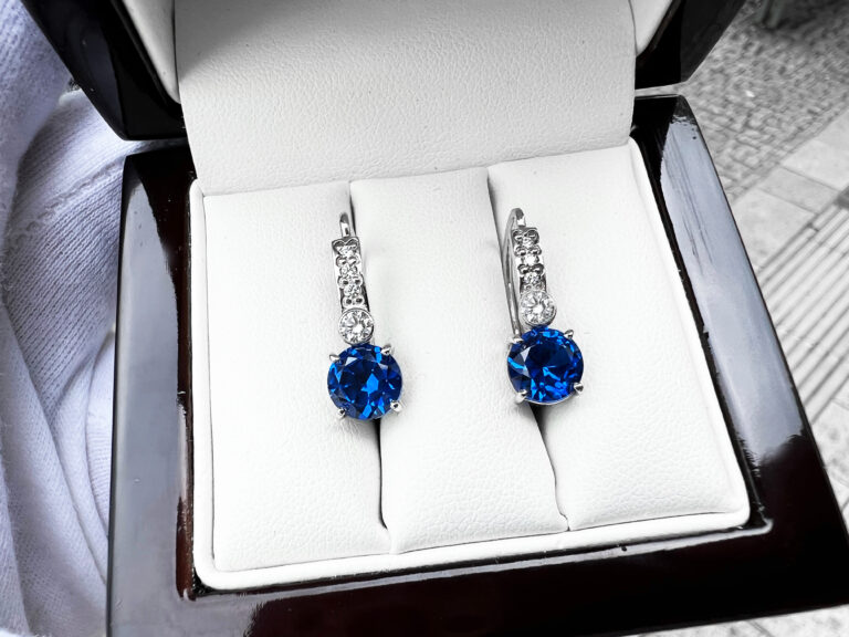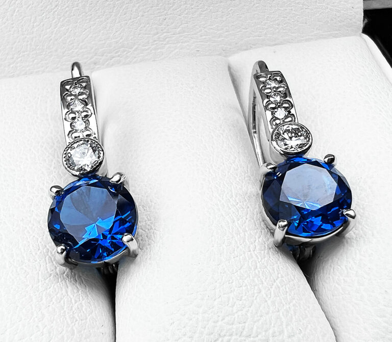 Luxusní dámské náušnice se safíry. Ruční práce. Originál, jediný pár.