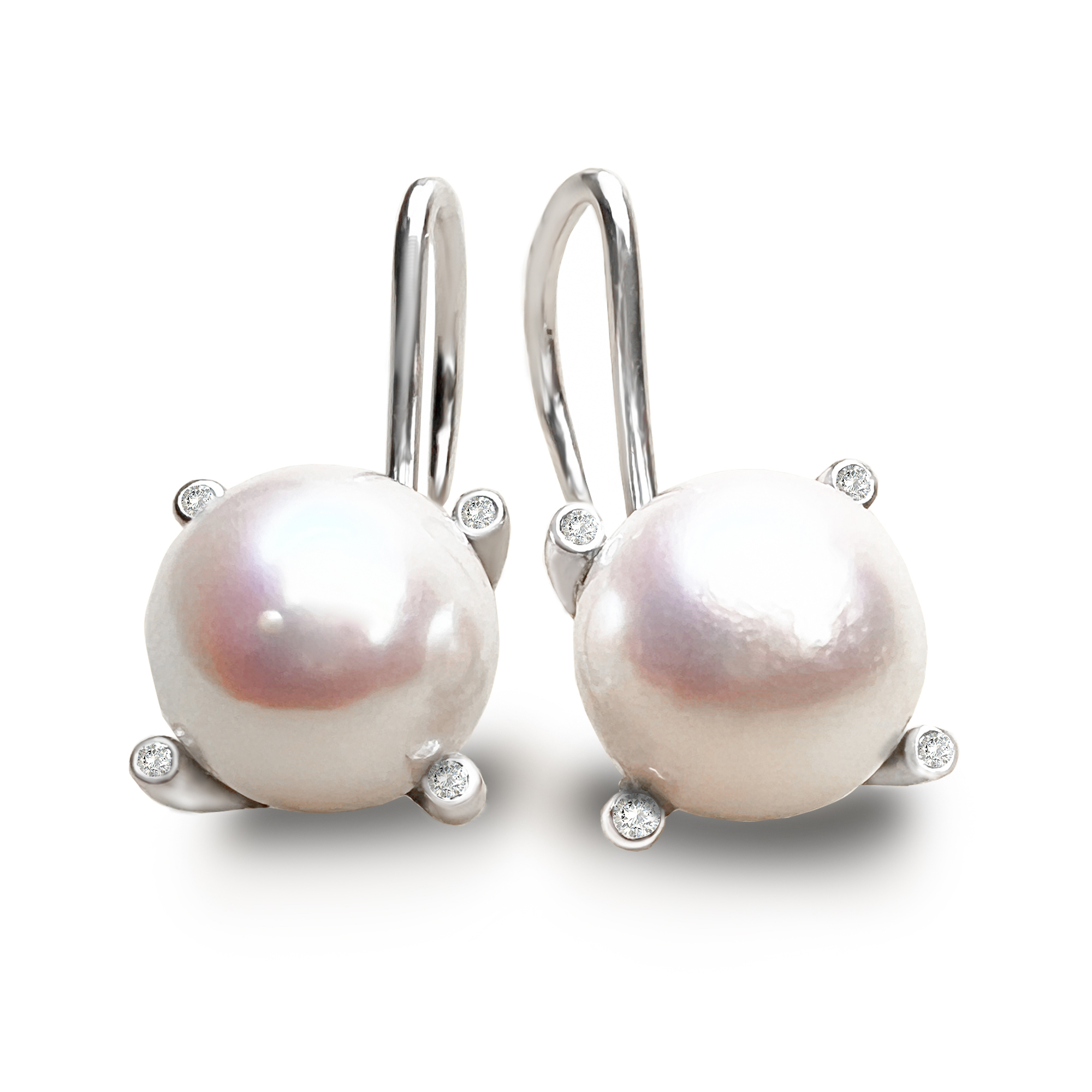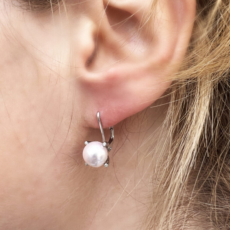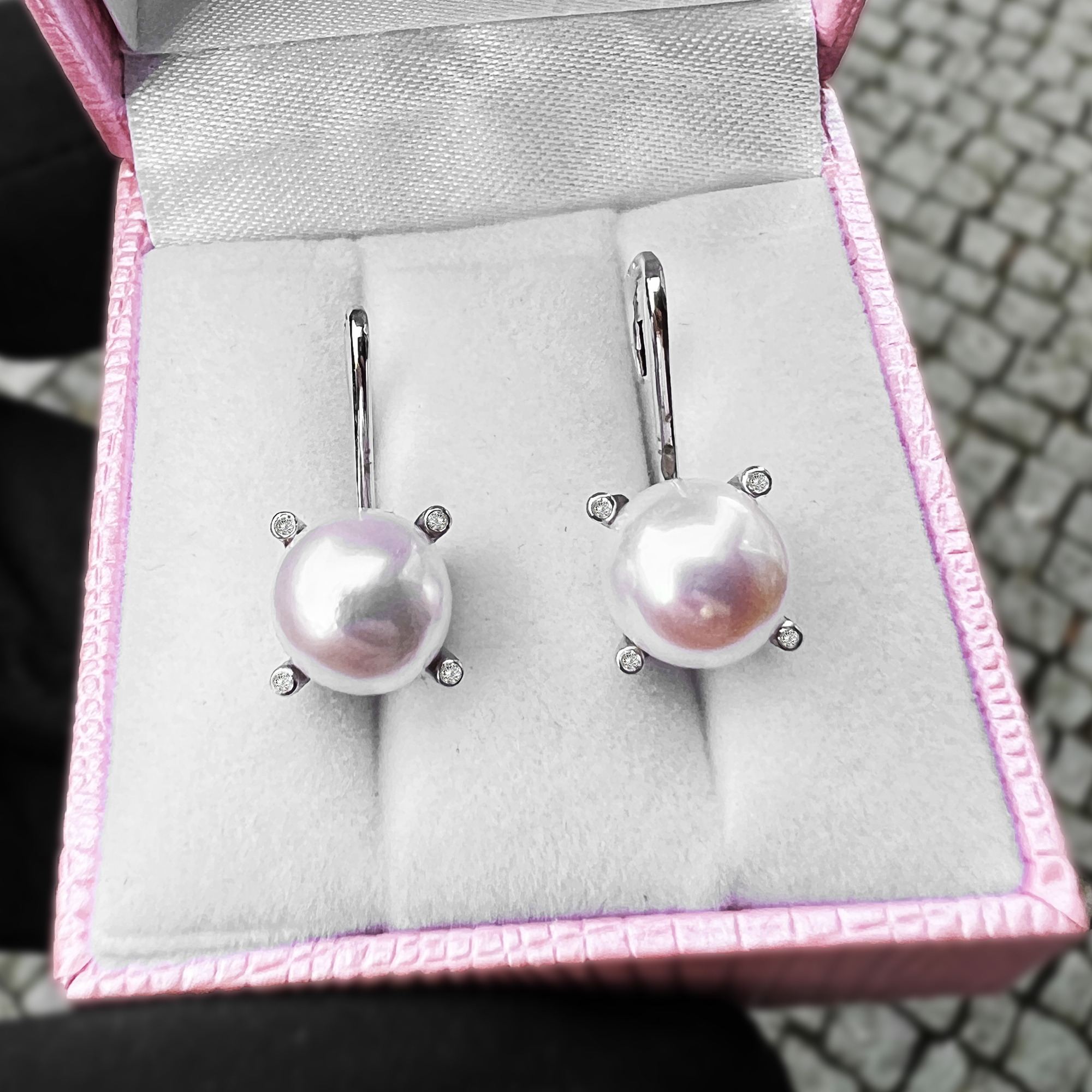 Naše perlové náušnice s diamanty jsme vyrobili v lehké odlehčené verzi s velmi elegantním umístěním diamantů kolem dokola přírodních perel.