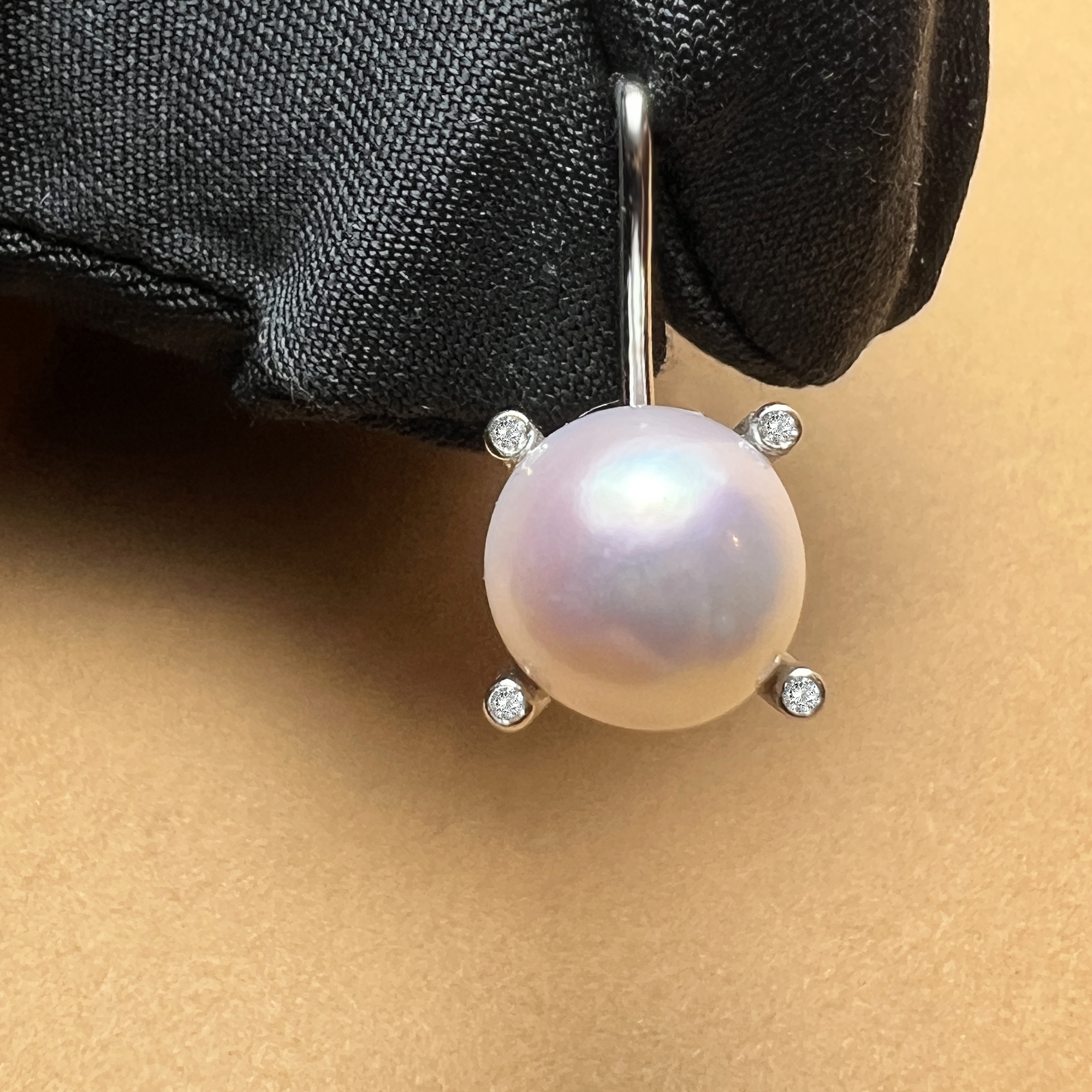 přírodní mořské perly v průměru 8.5 mm + 8 přírodních diamantů o celkové váze 0.034 ct