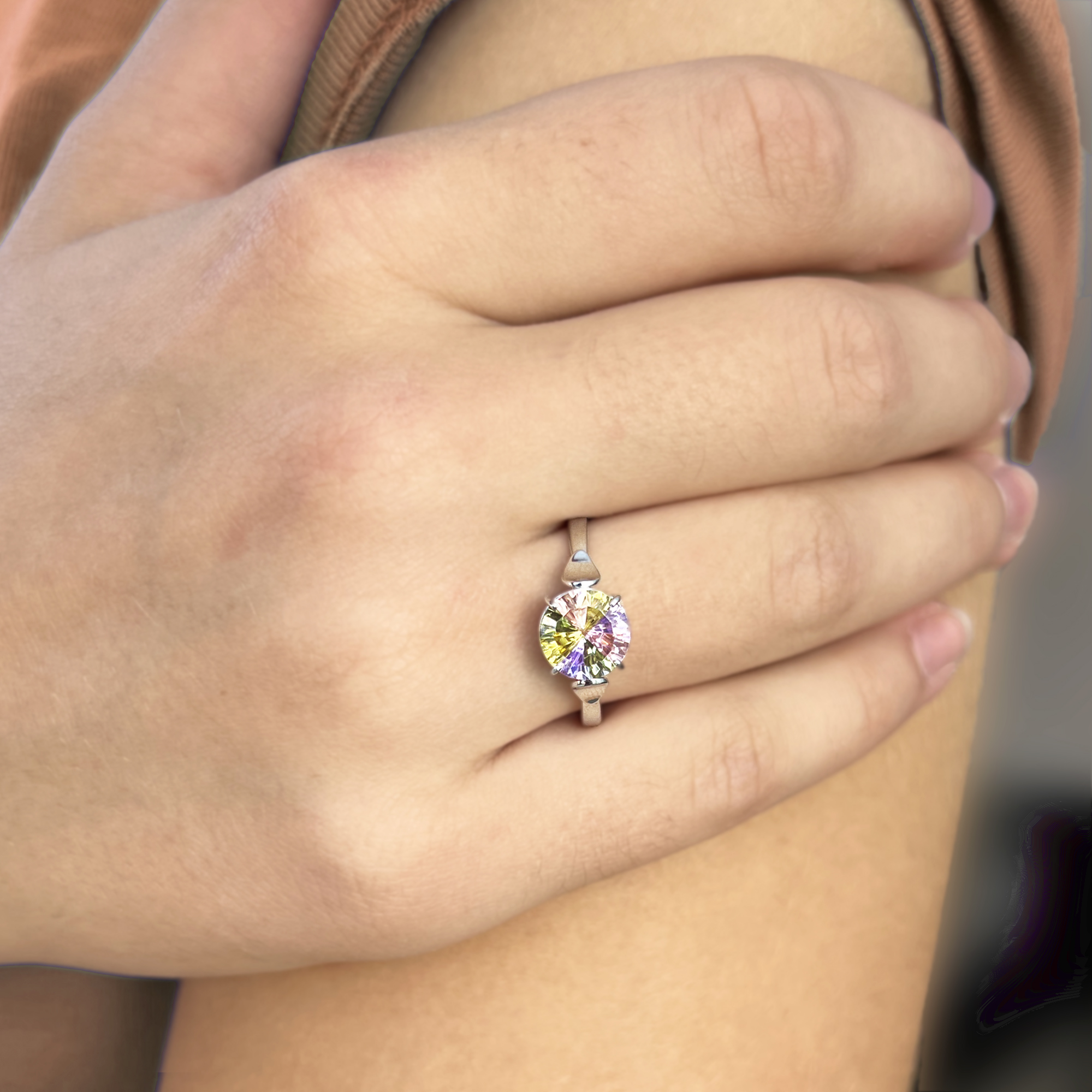 pestrobarevný syntetický zirkon je v průměru 7 mm