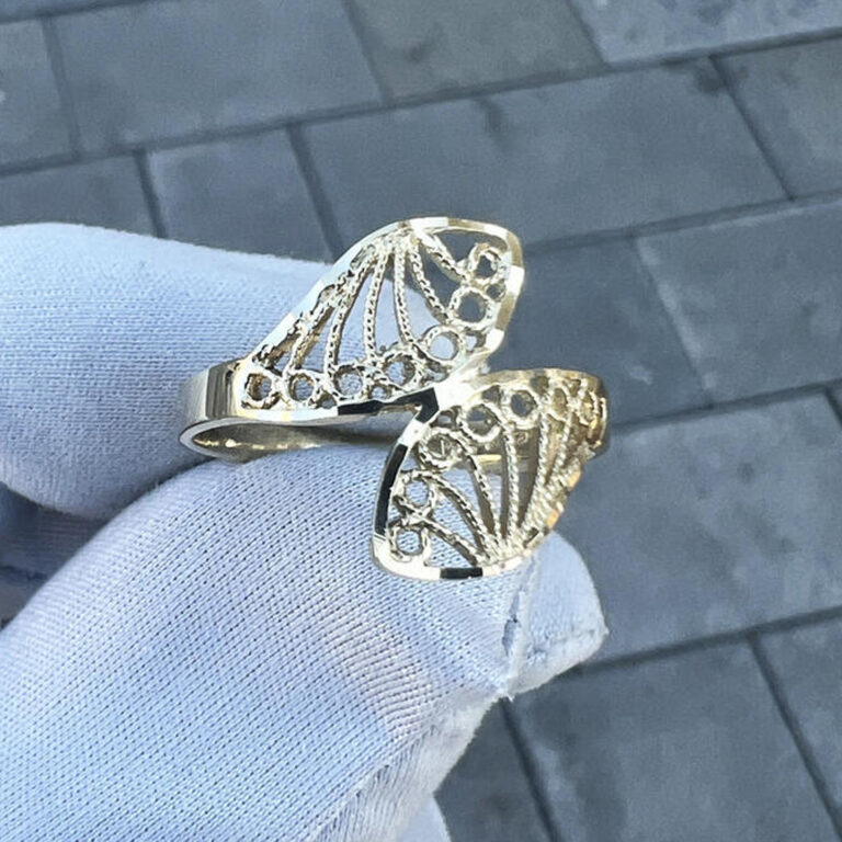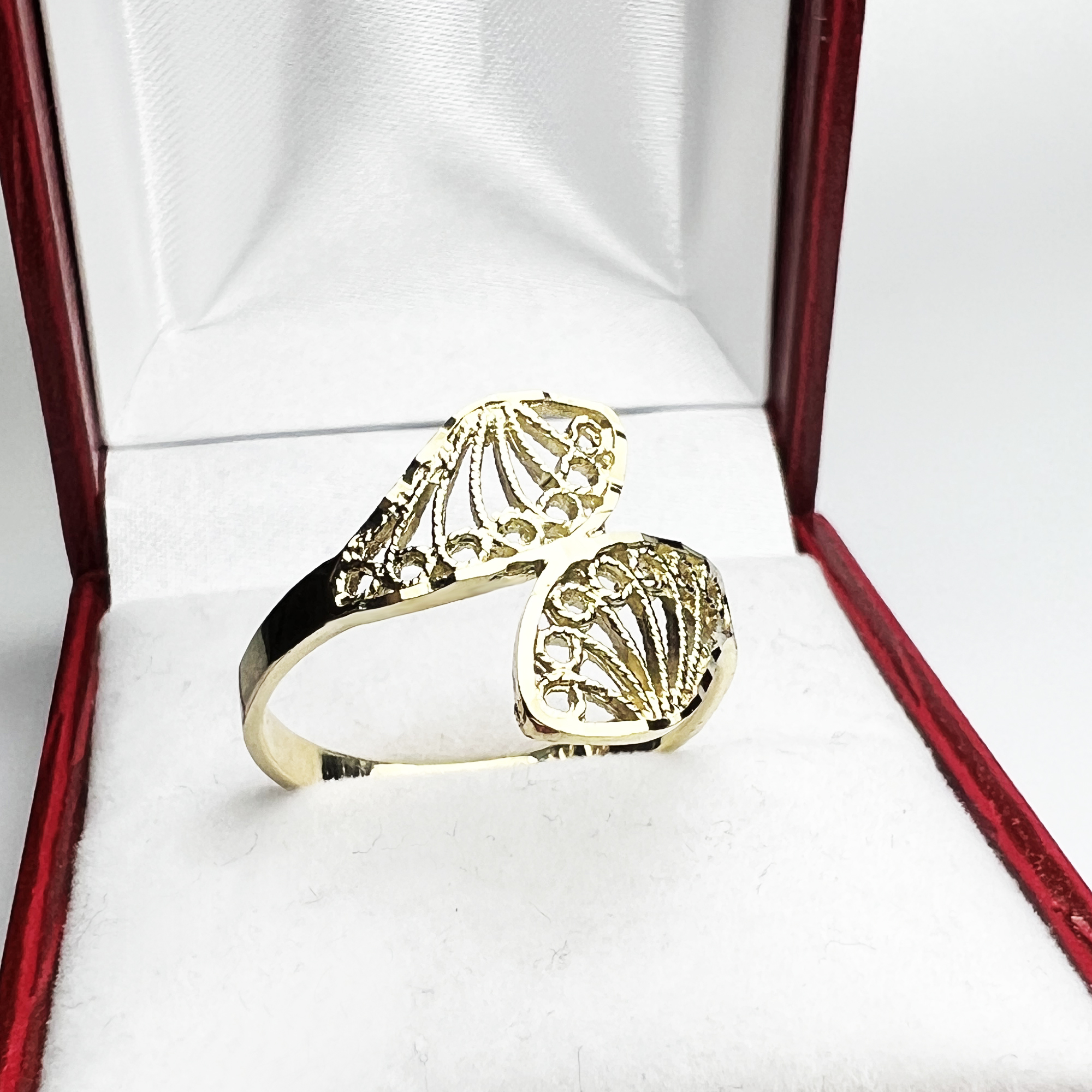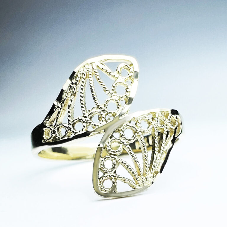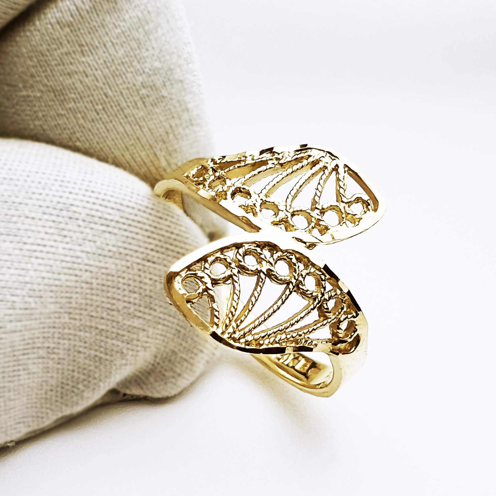 Retro zlatý prsten ve tvaru motýlka. Bohatě zdobený motiv motýlka.