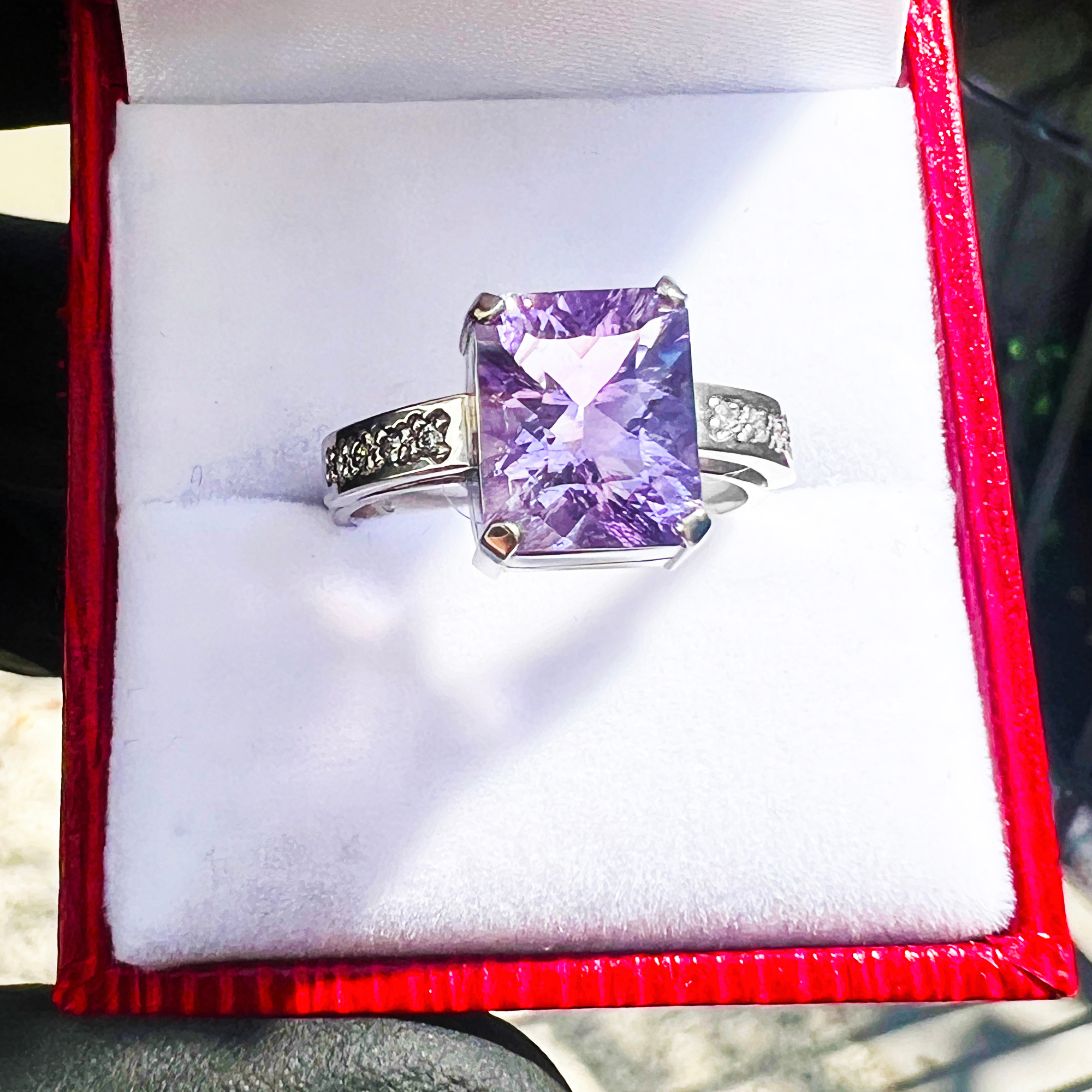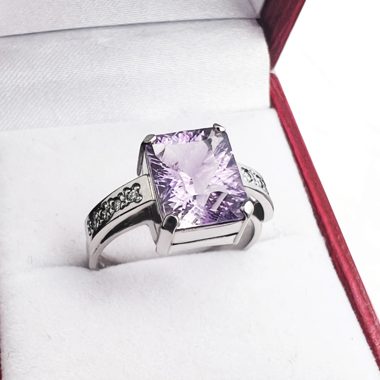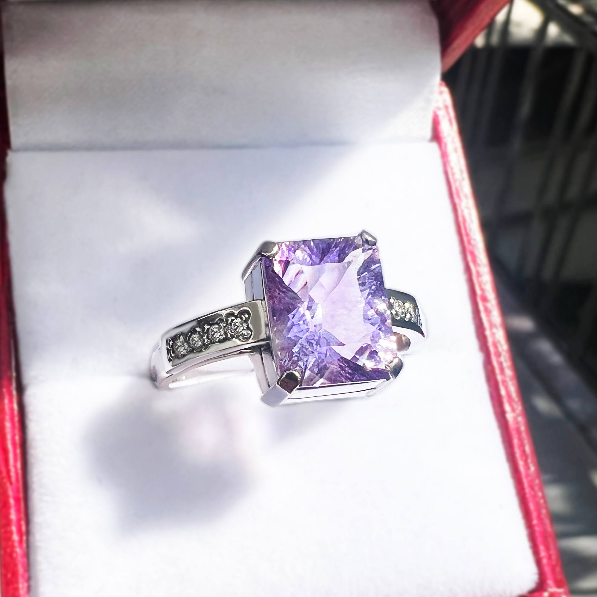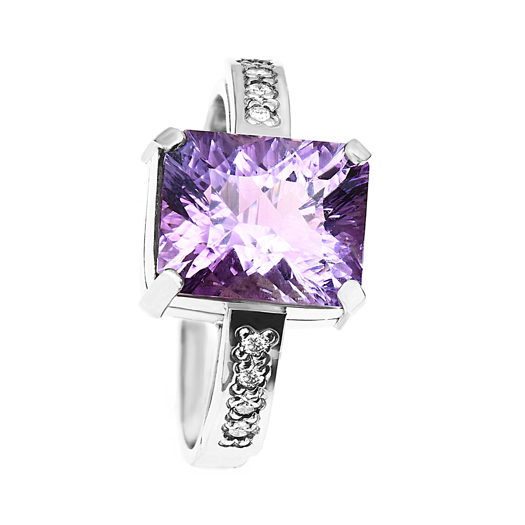 Stuchlík zlatý prsten s ametystem a diamanty 015058
