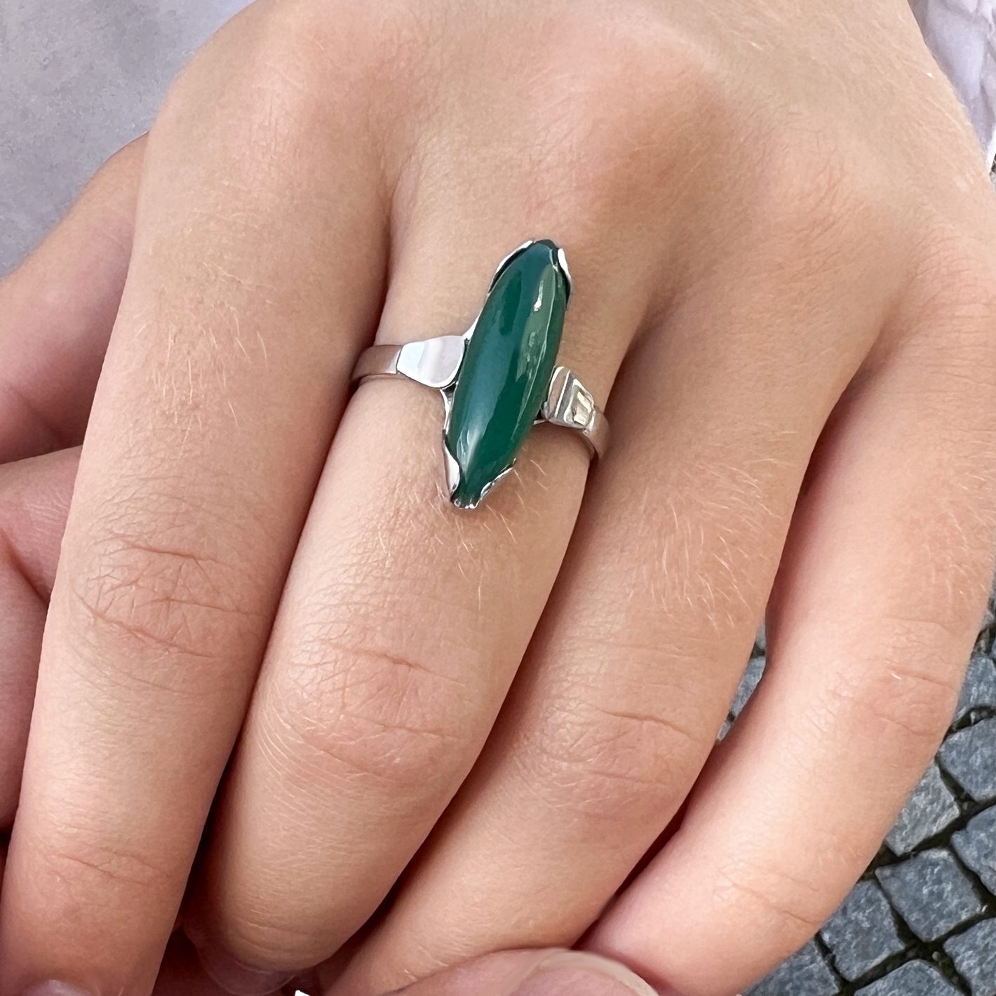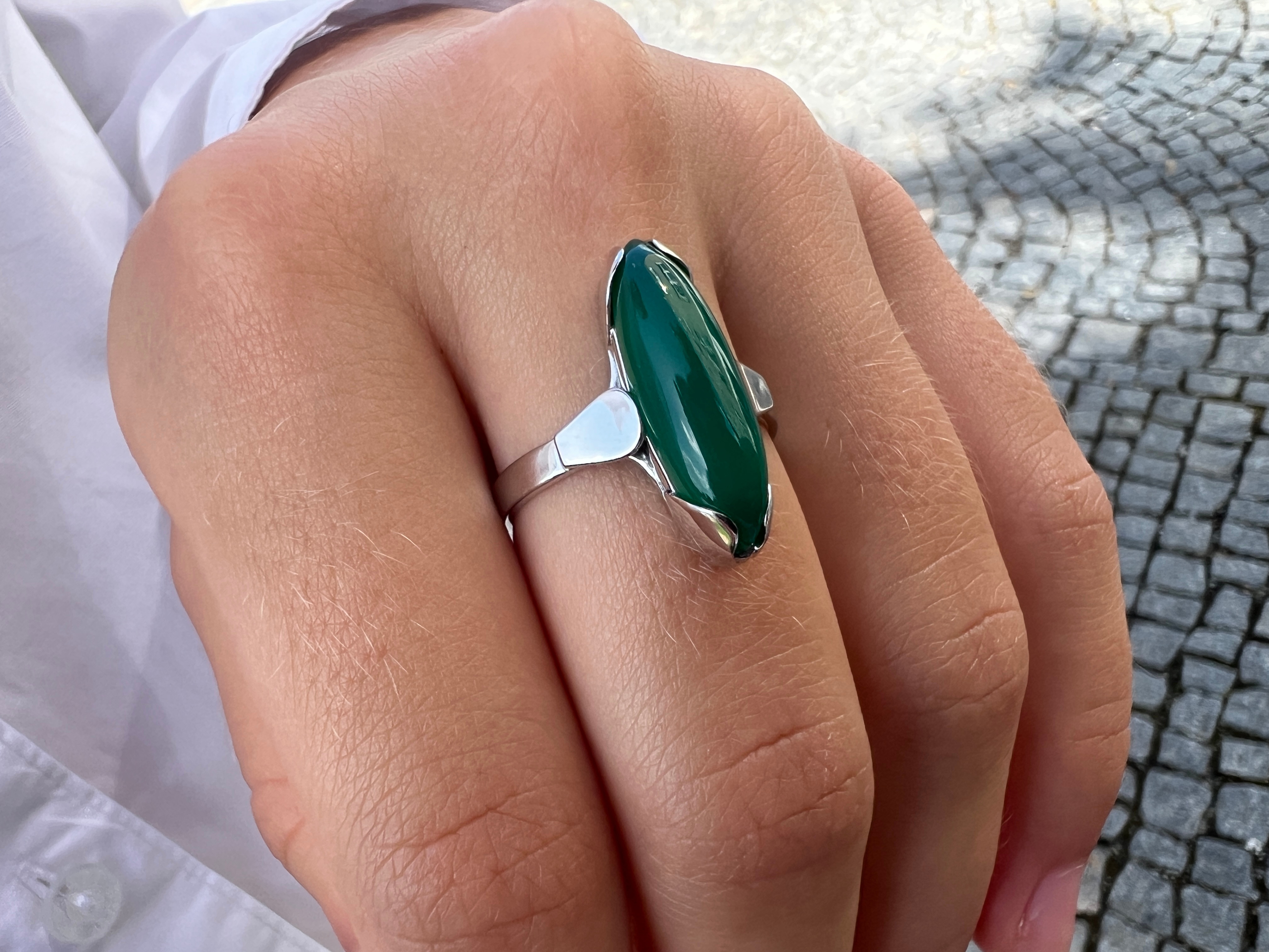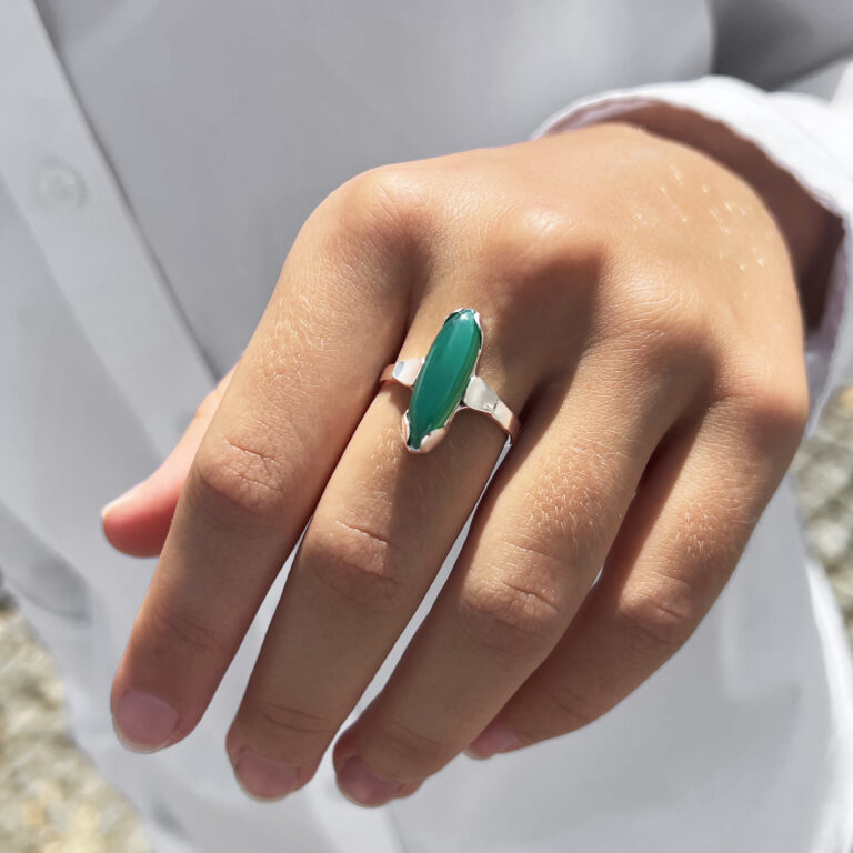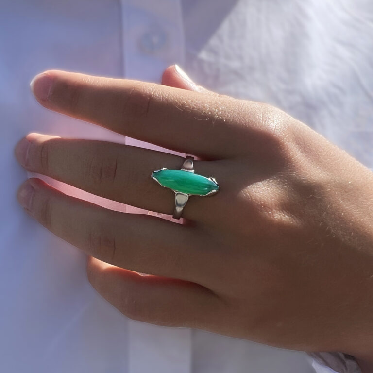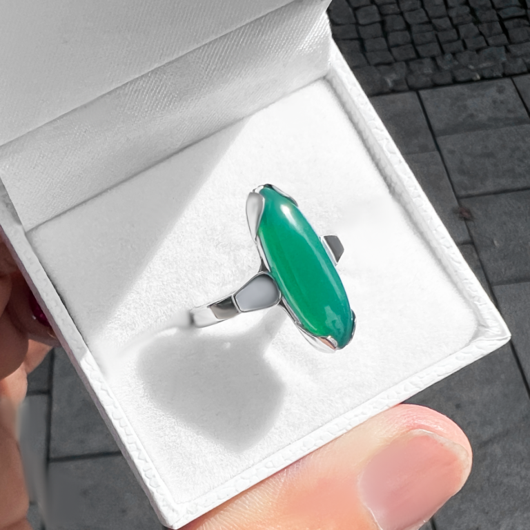Originální zlatý prsten s chryzoprasem. Ruční práce.