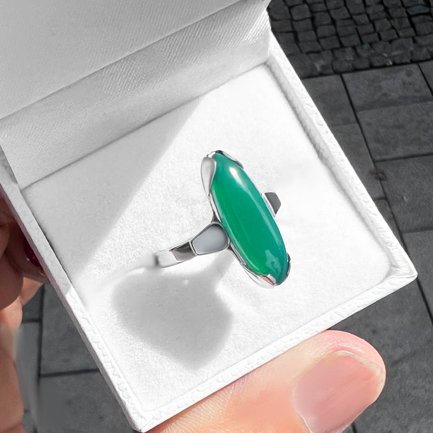 přírodní chryzopras v délce 20mm a šírce 6.5 mm