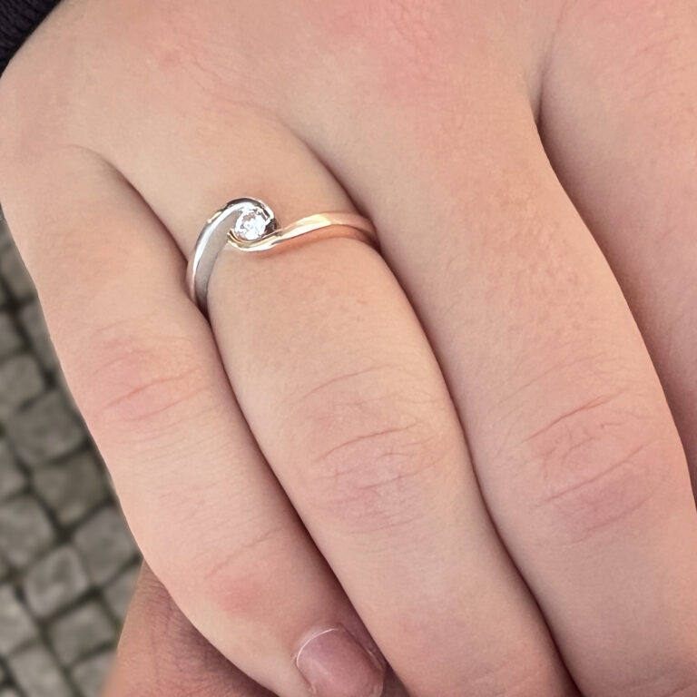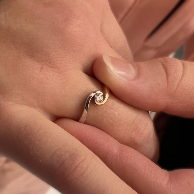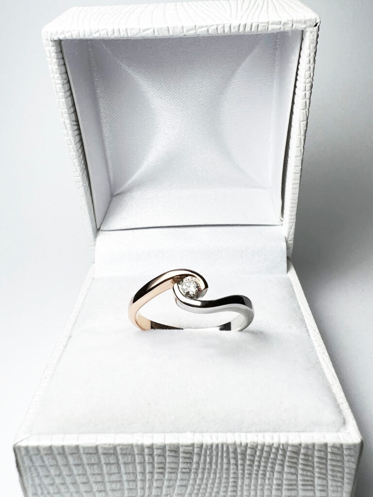 Zlatý prsten s diamantem. Ruční práce z naší zlatnické dílny.