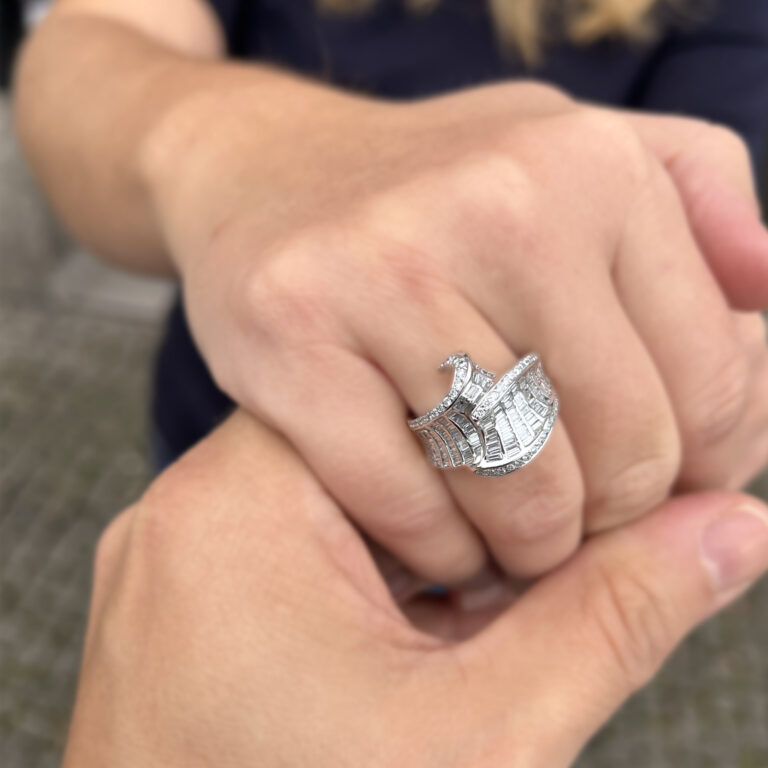 Opulentní diamantový prsten z 18ti karátového zlata.