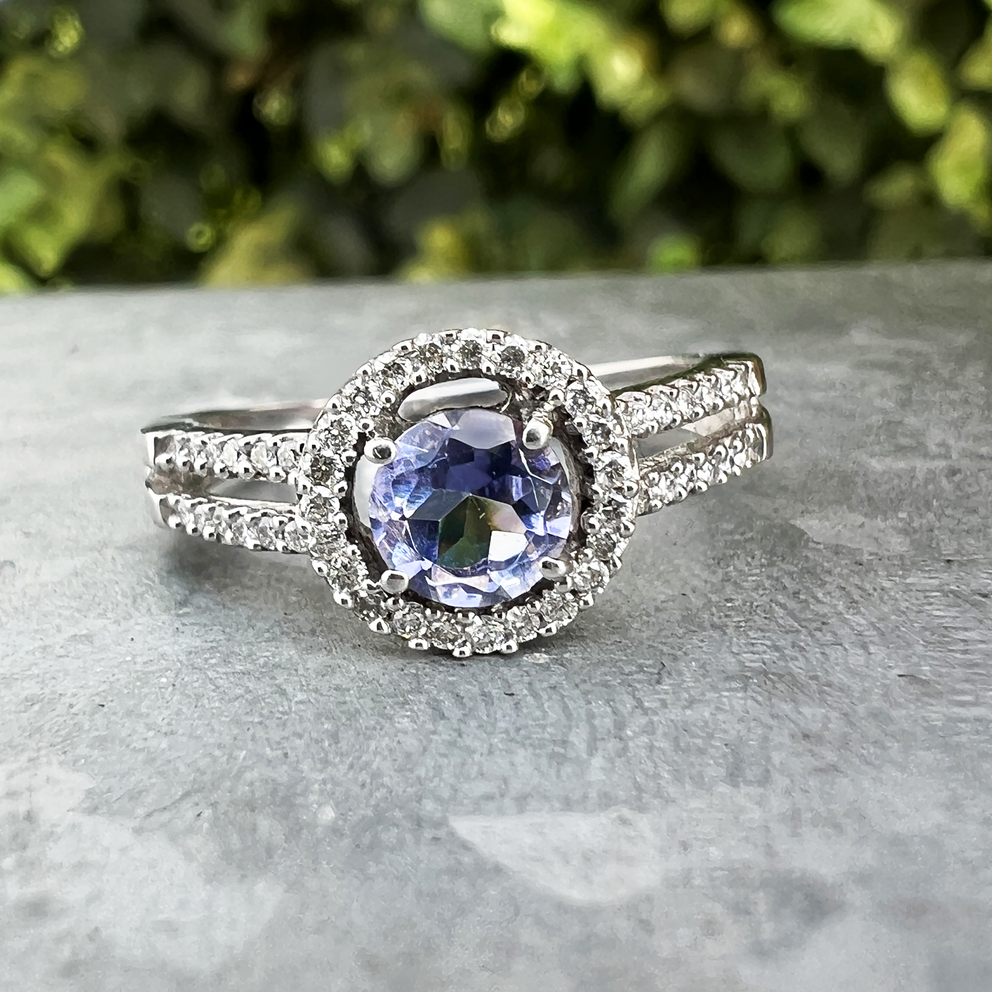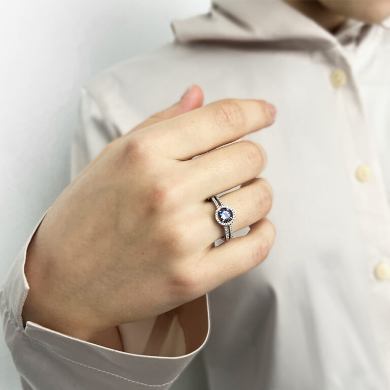 Stuchlík zlatý prsten s iolitem a diamanty 037192