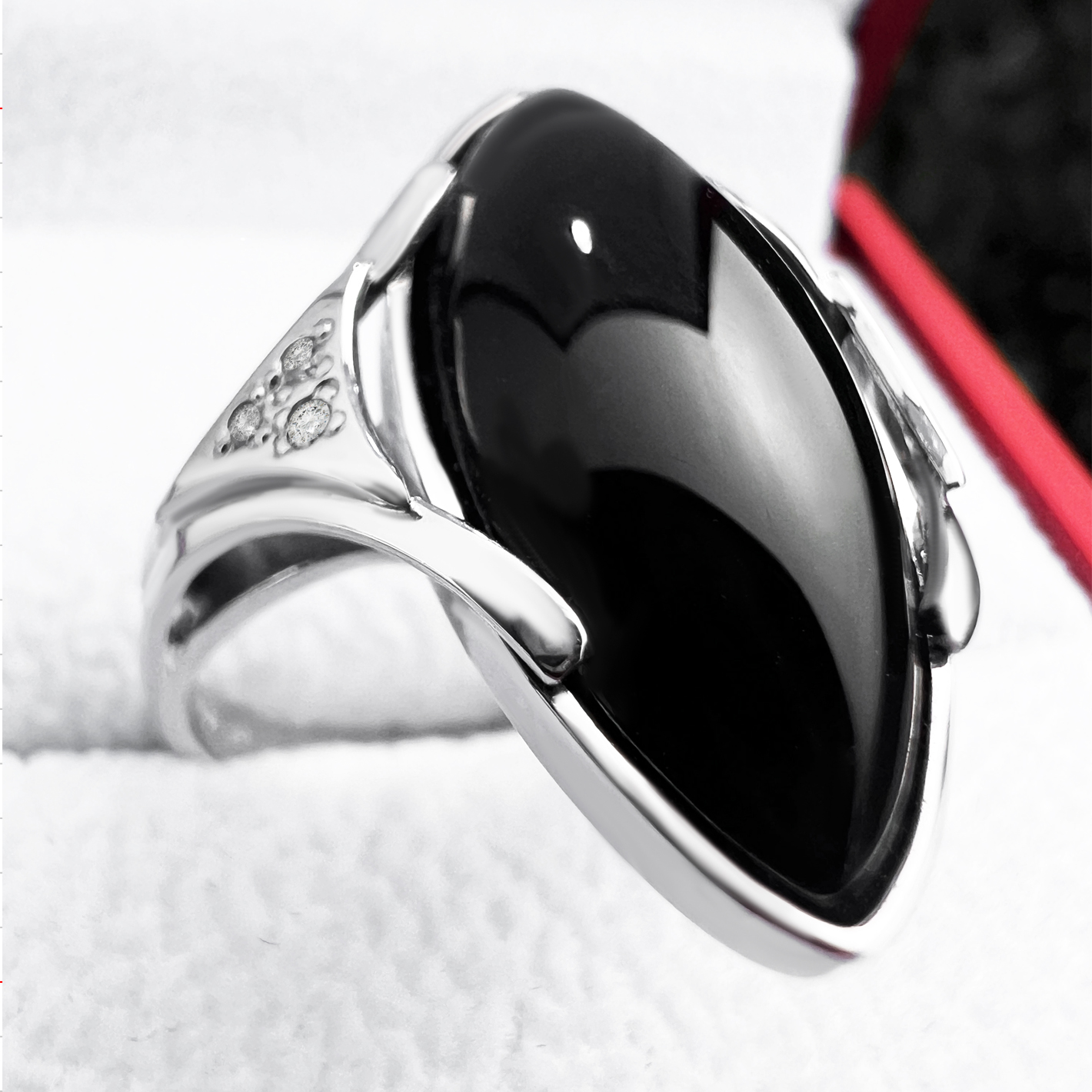 přírodní onyx v rozměru 21.5.*10 mm + 6 přírodních diamantů o celkové váze 0,042 ct