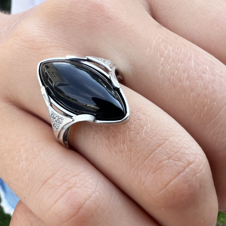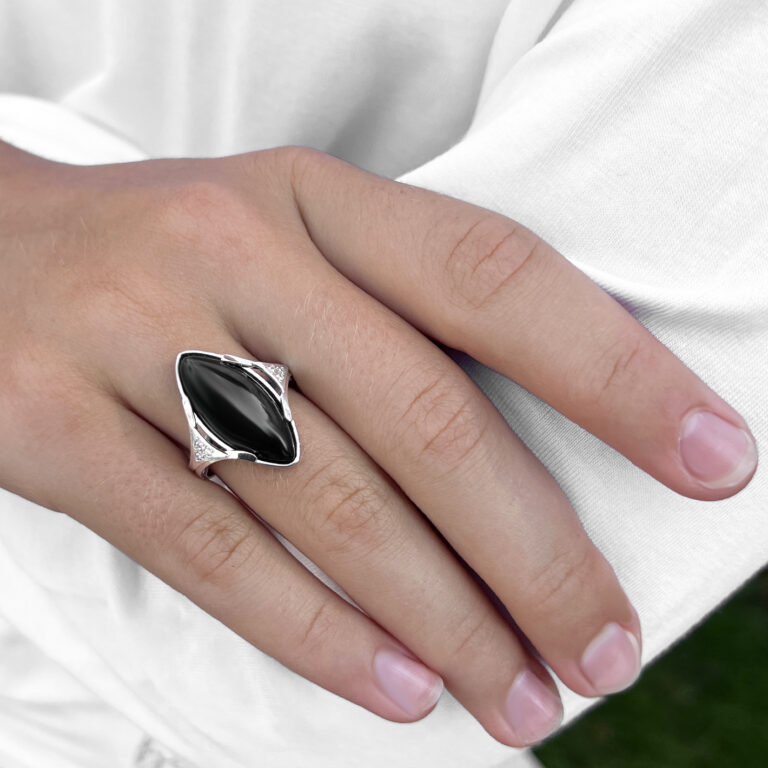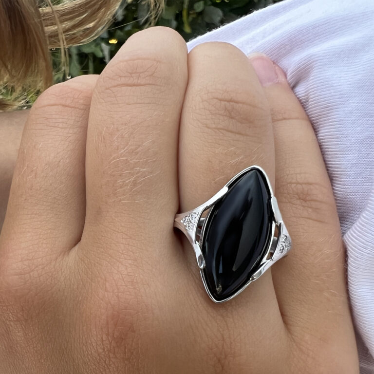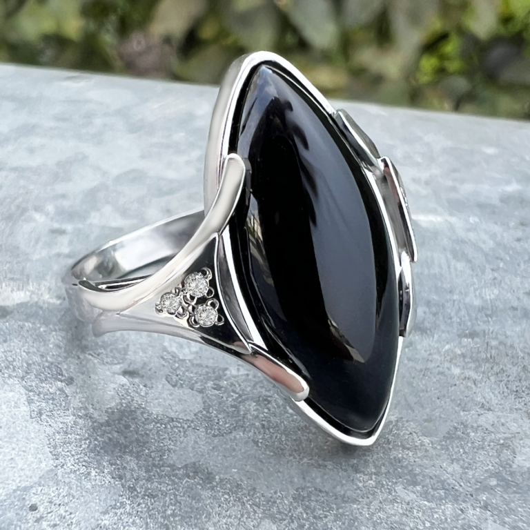 Originální šperk s onyxem a diamanty. Kompletní ruční práce z naší zlatnické dílny.