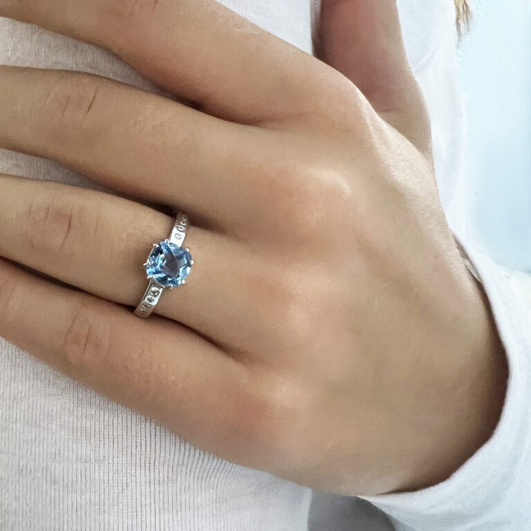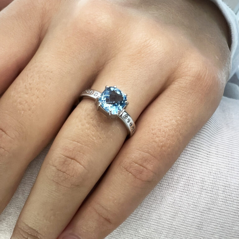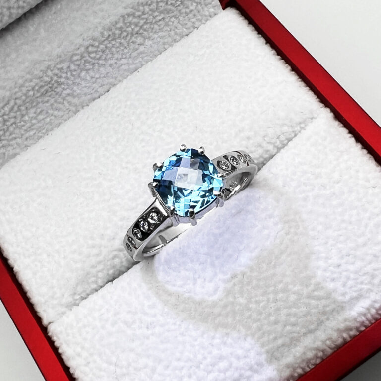 přírodní topaz rozměrů 7*7 mm + 10 diamantů o celkové váze 0,11 ct