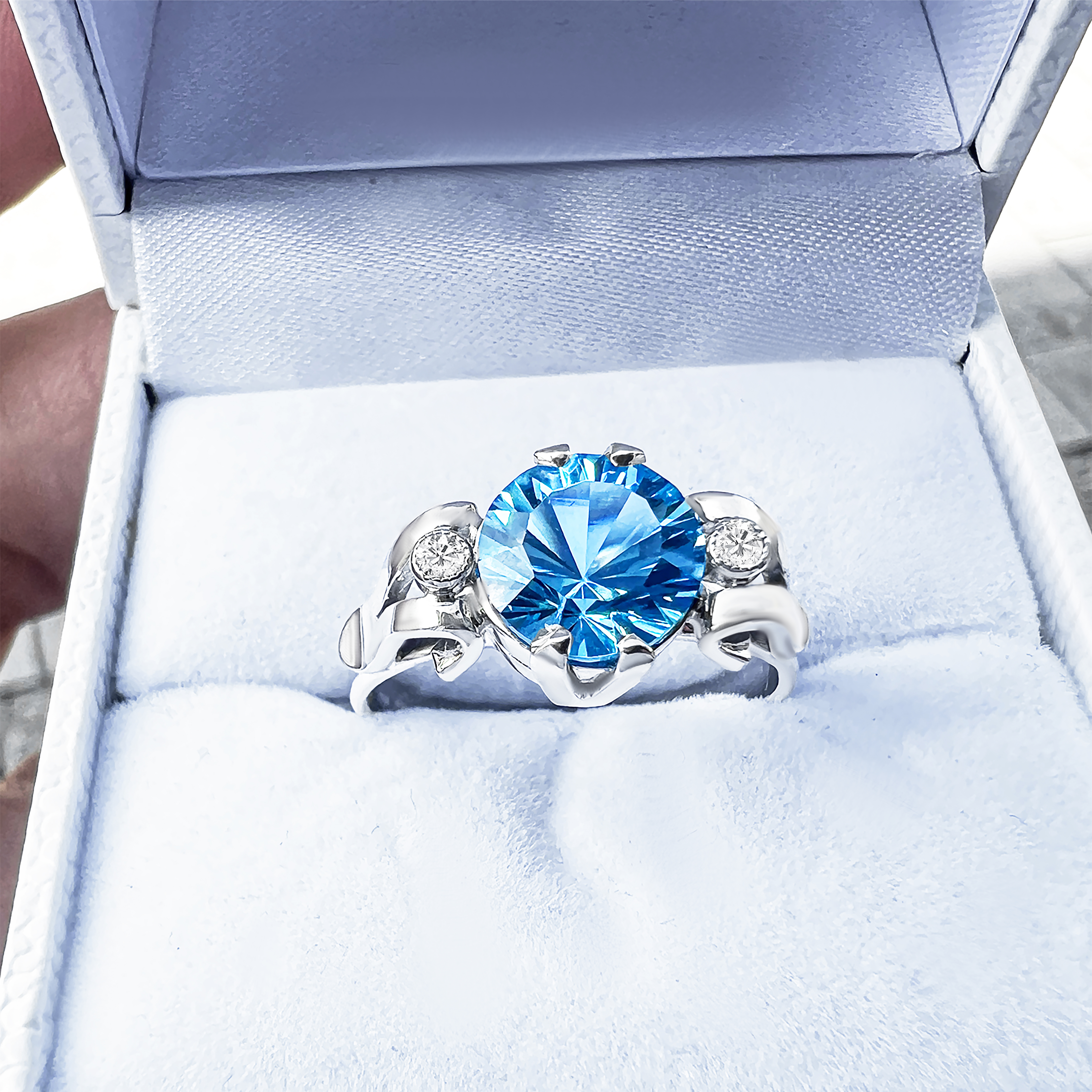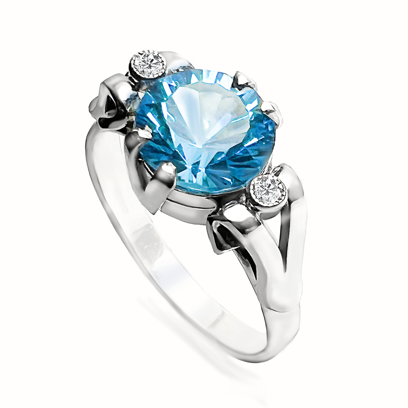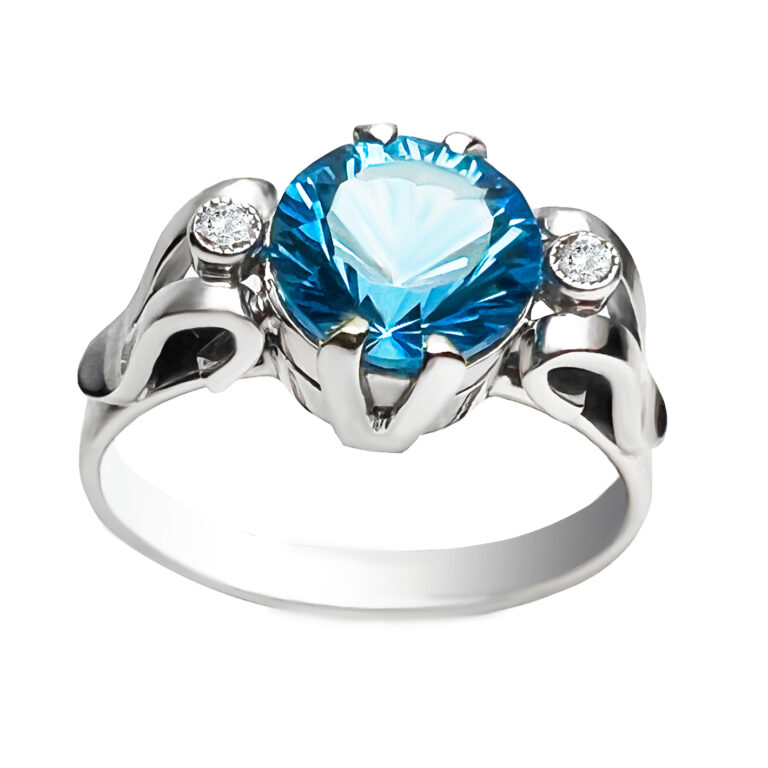 Propracovaný diamantový prsten s topazem. Originální ruční práce.