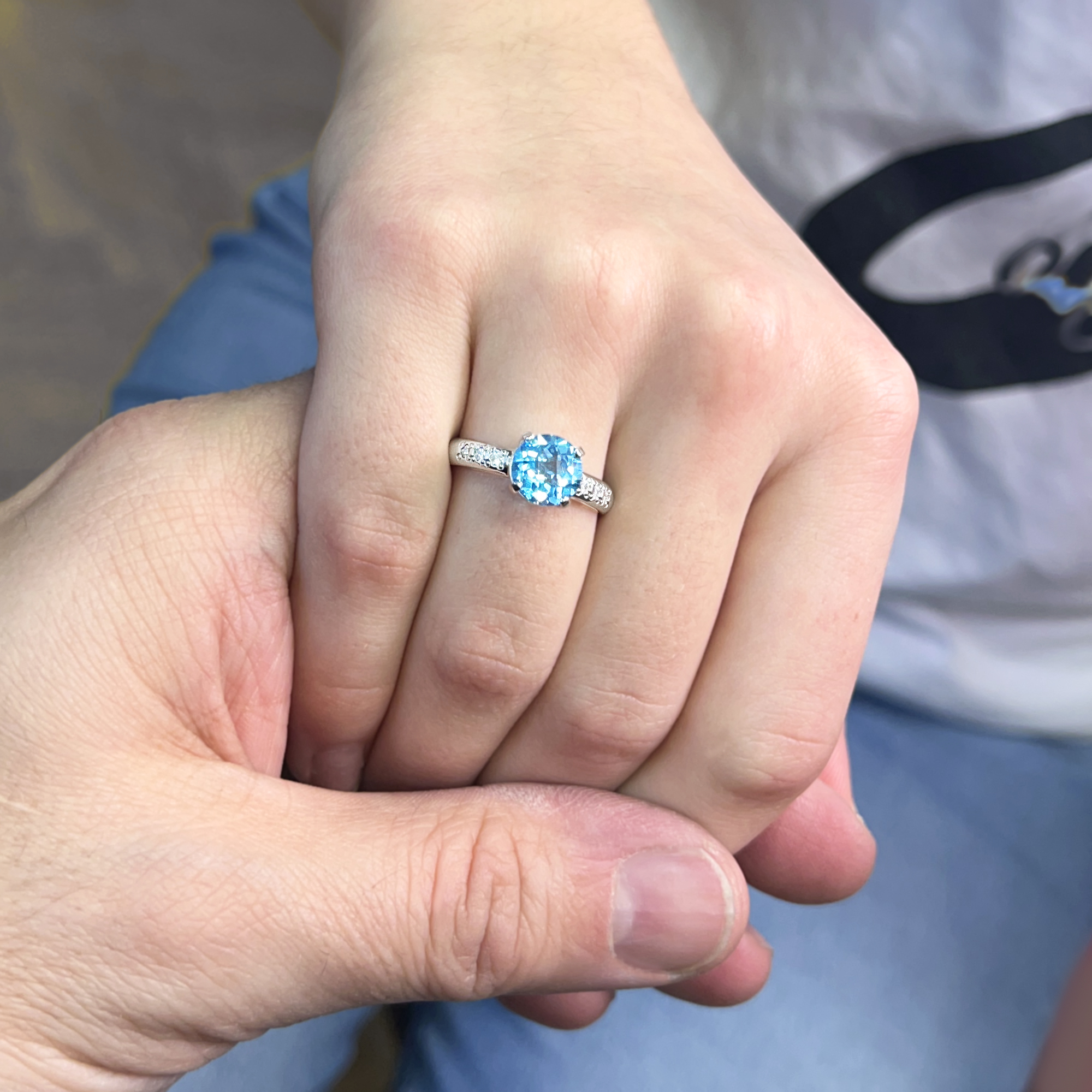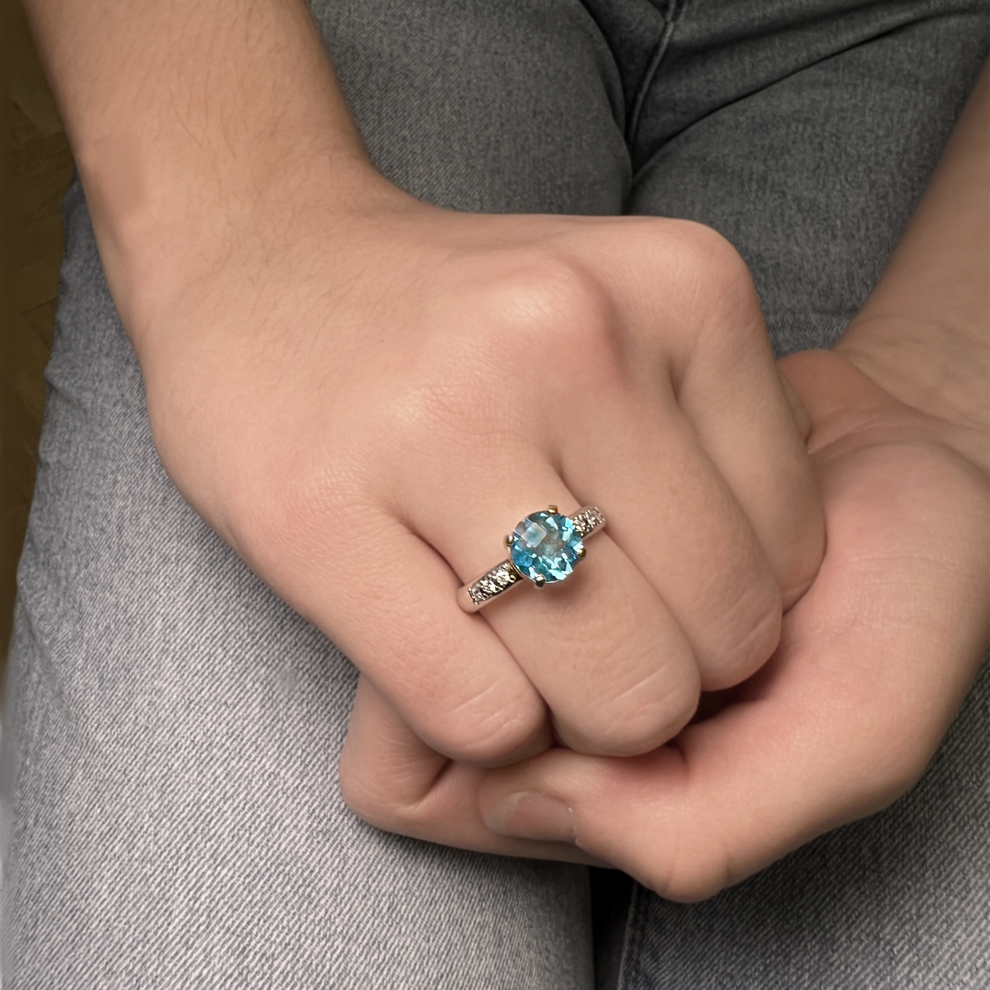 přírodní topaz v průměru 8 mm + 6 diamantů kvality Si1/ barvy bílá G