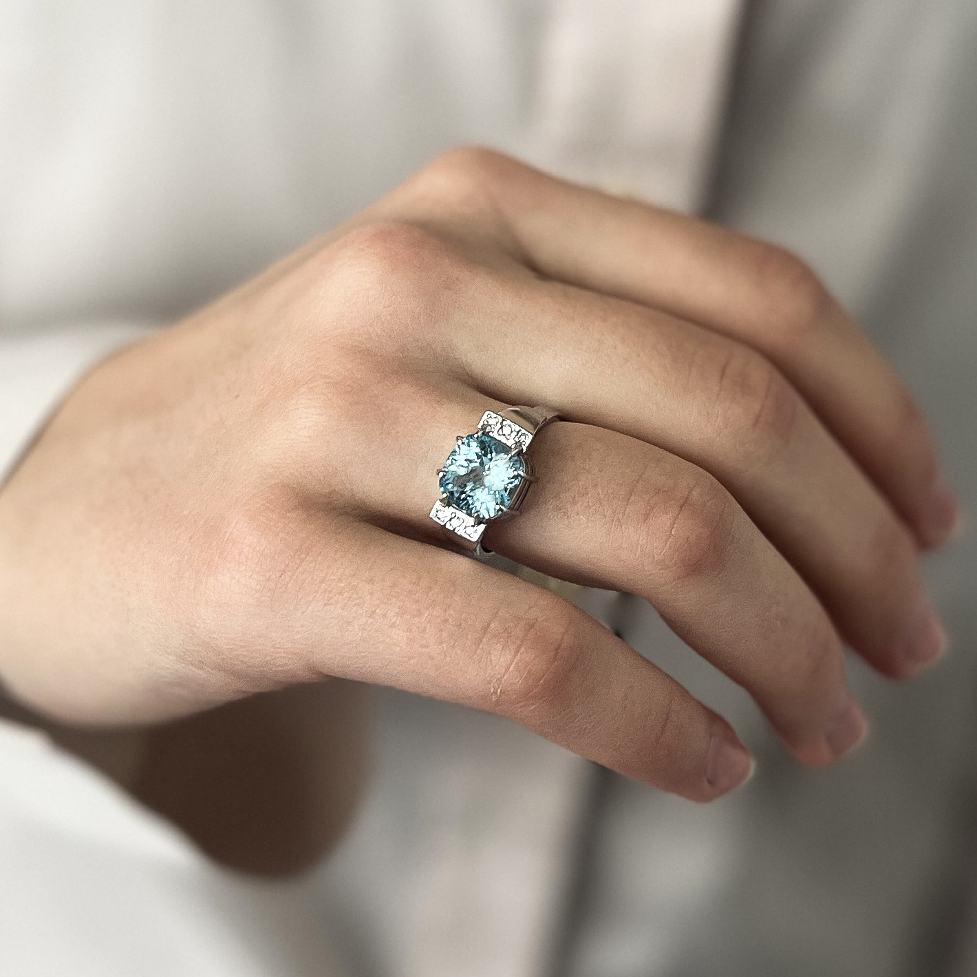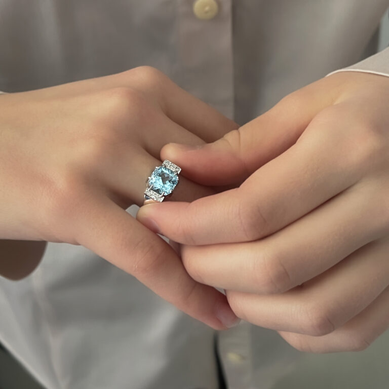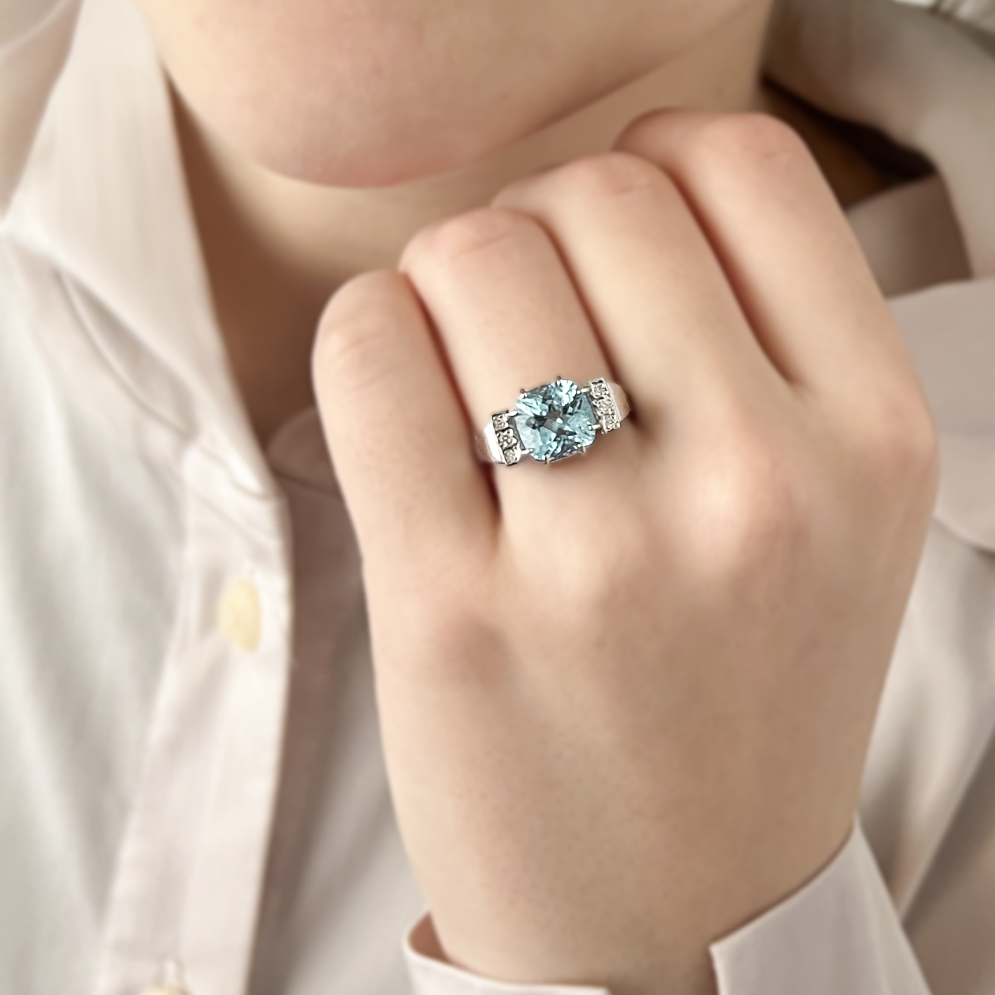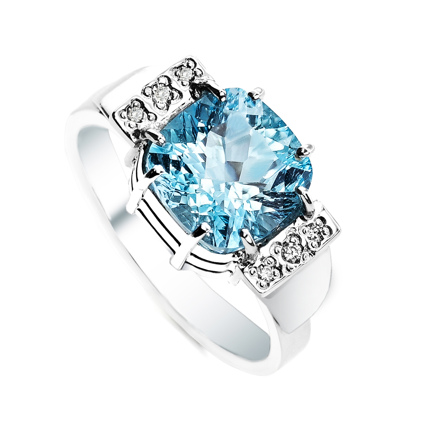 přírodní topaz v rozměru 9*9 mm + 6 diamantů o celkové váze 0.07 ct kvality SI1/ bílá G