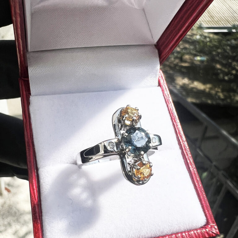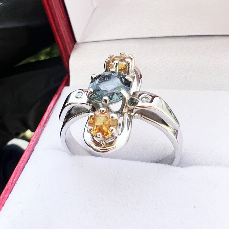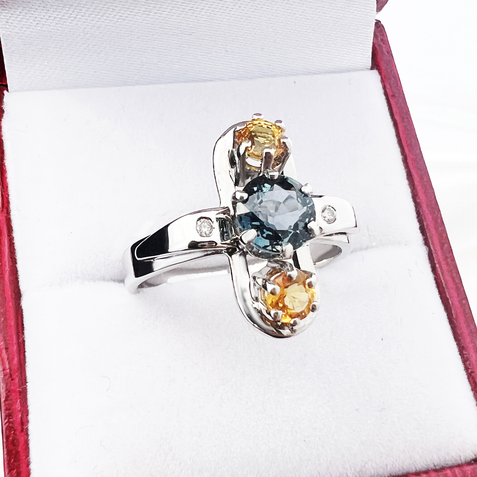 Stuchlík zlatý prsten safíry s diamanty 014967