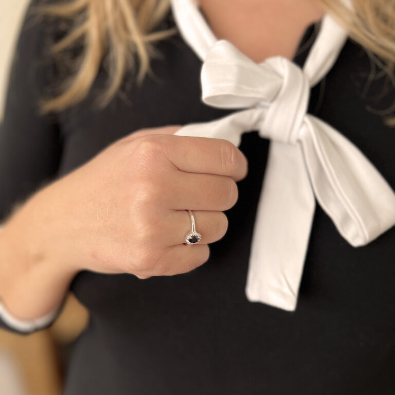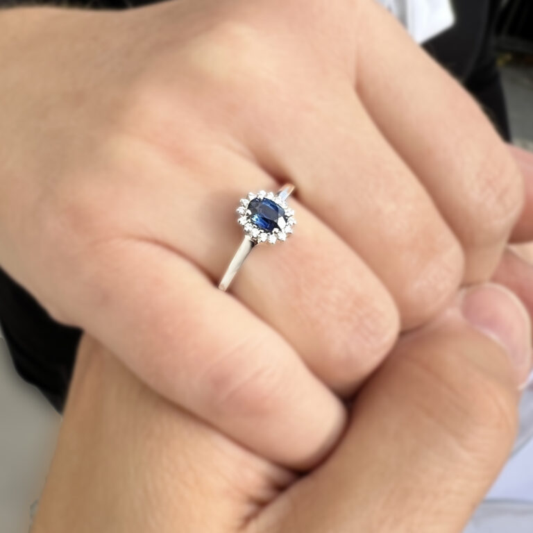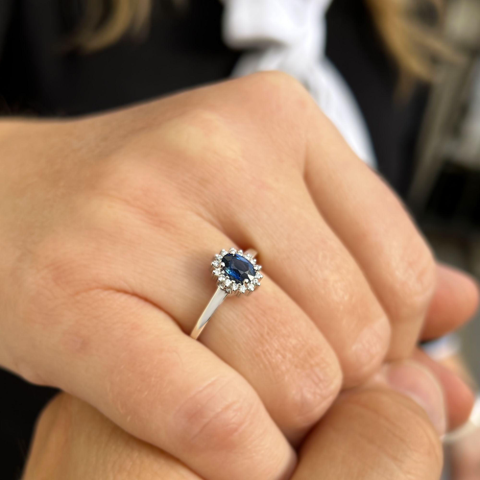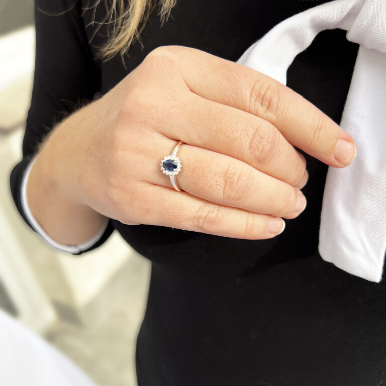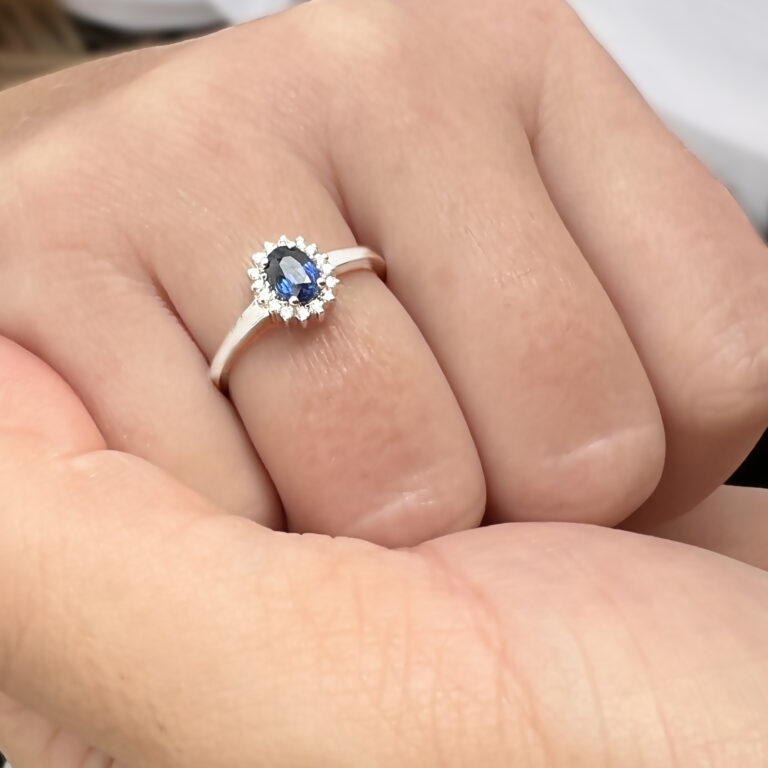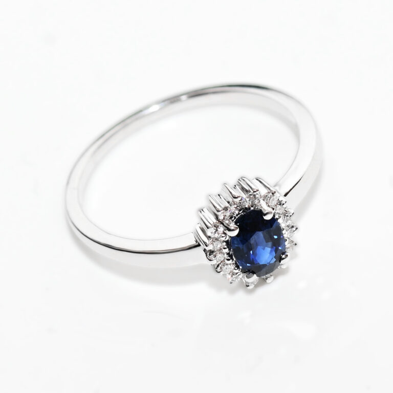 Stuchlík zlatý prsten se safírem a diamanty 70275
