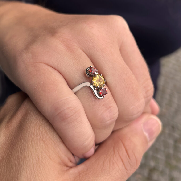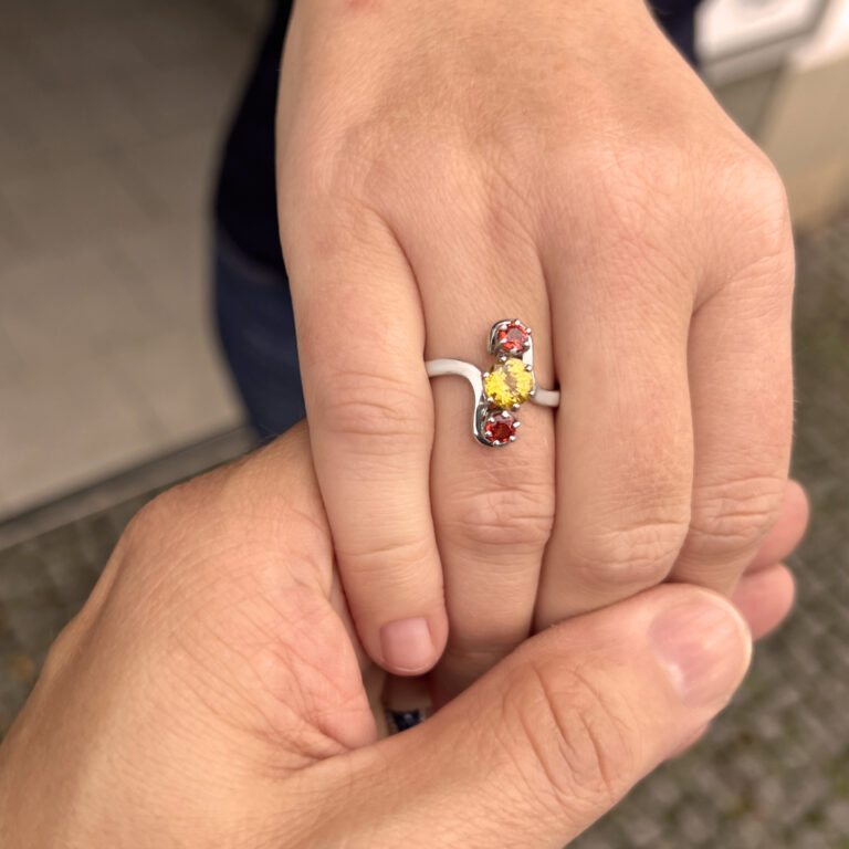 Originální zlatý prsten se safíry. Ruční práce z naší zlatnické dílny.