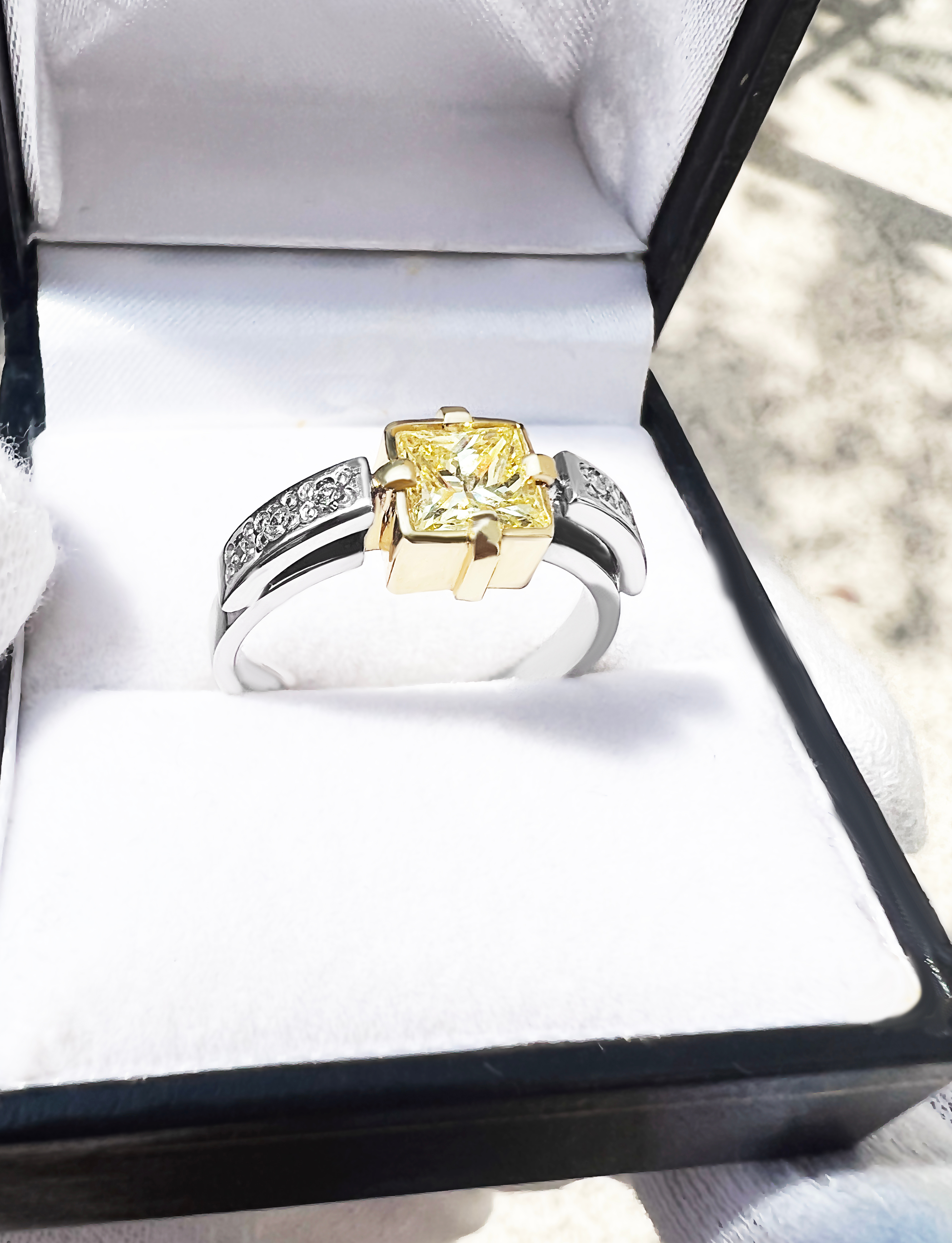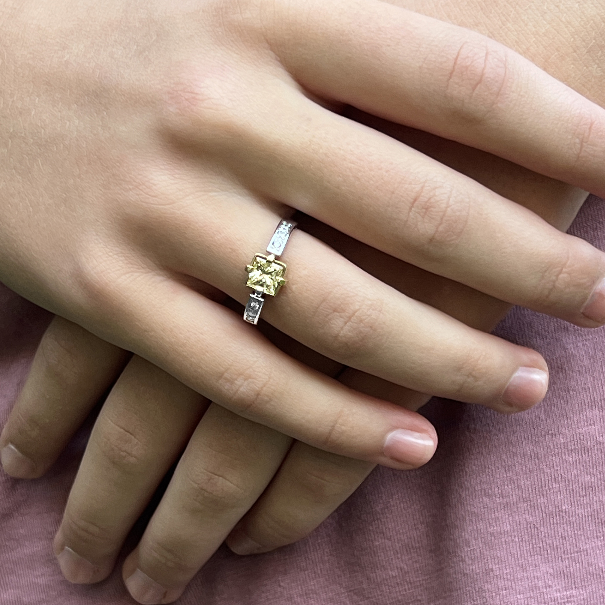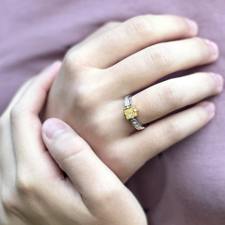 žlutý diamant je v rozměru 5.4 x 5.4 mm váhy 0,80 ct