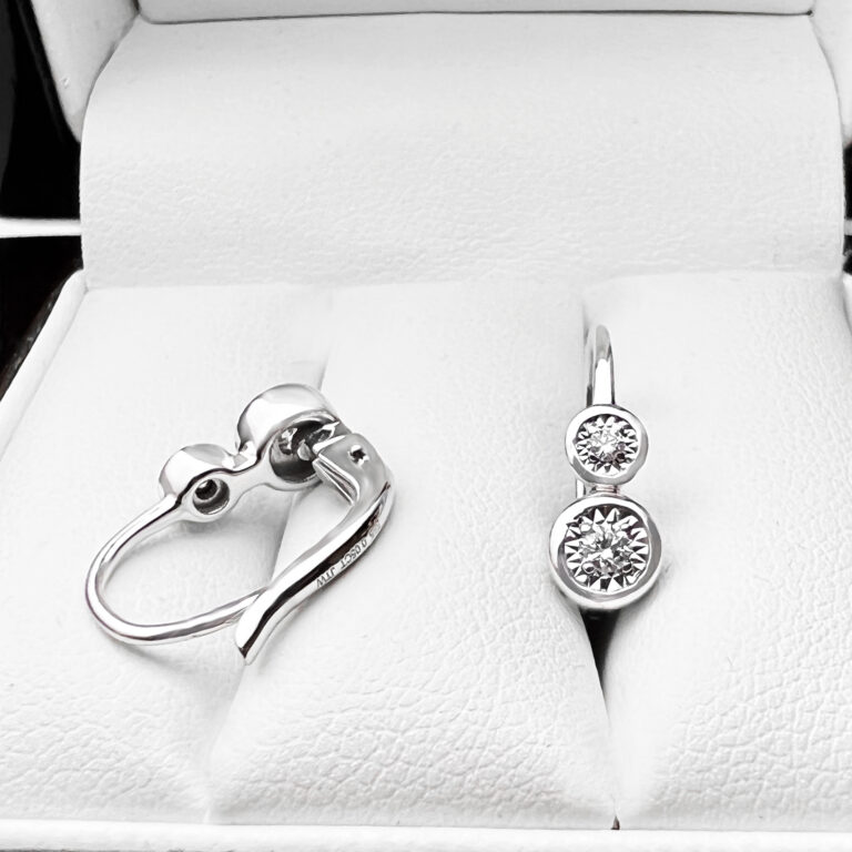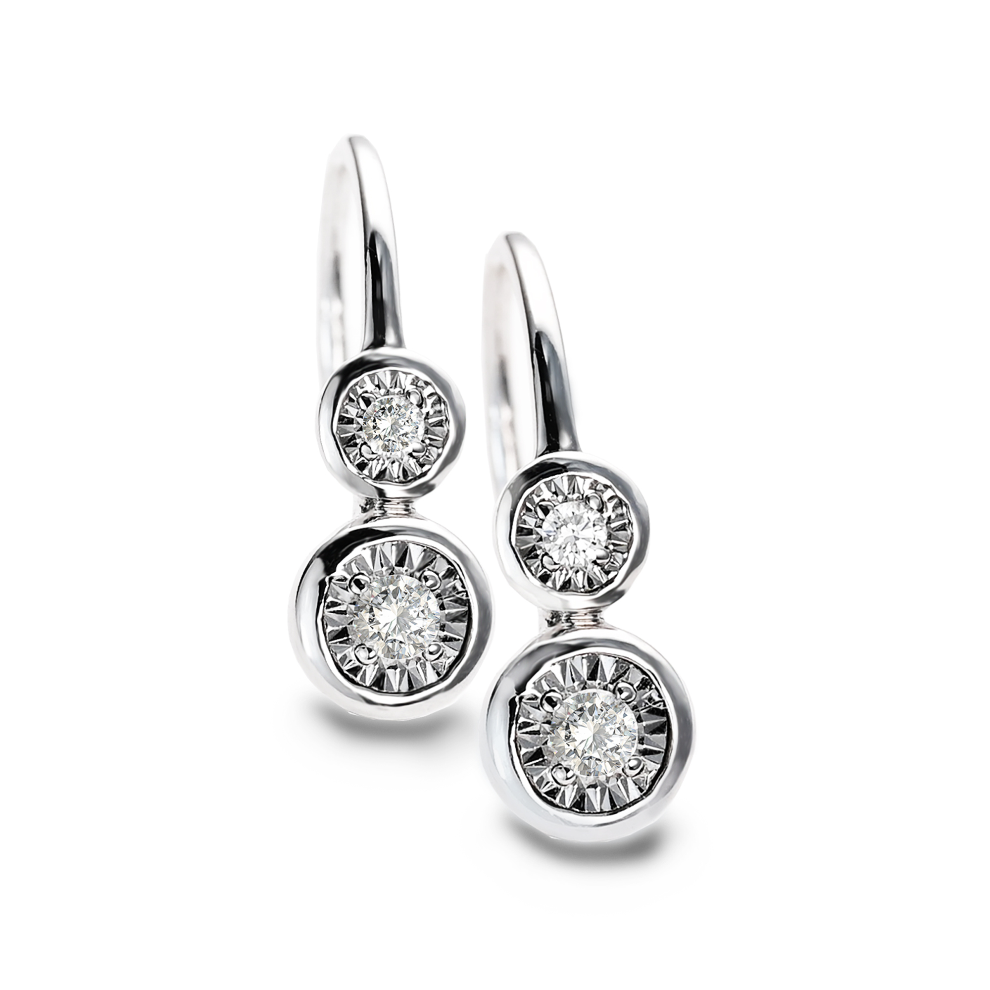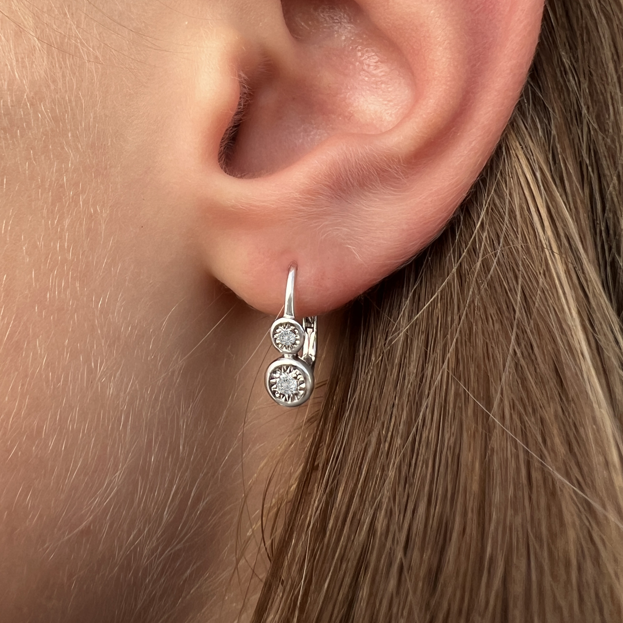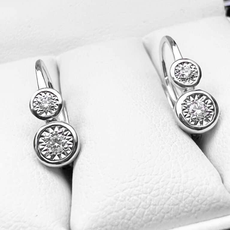 Jemné zlaté náušnice s diamanty v bílém zlatě.