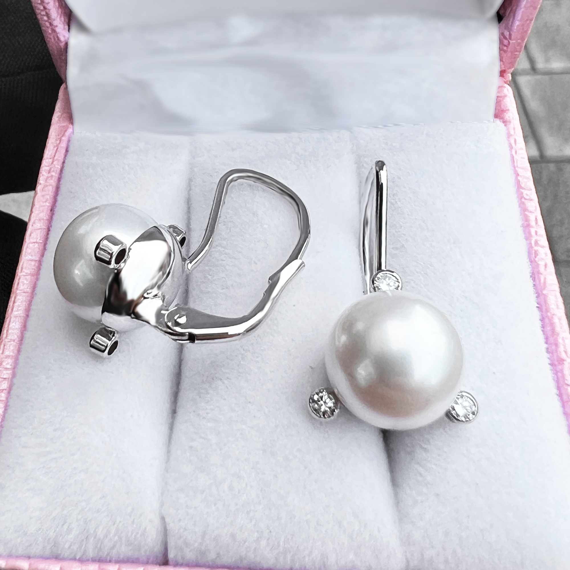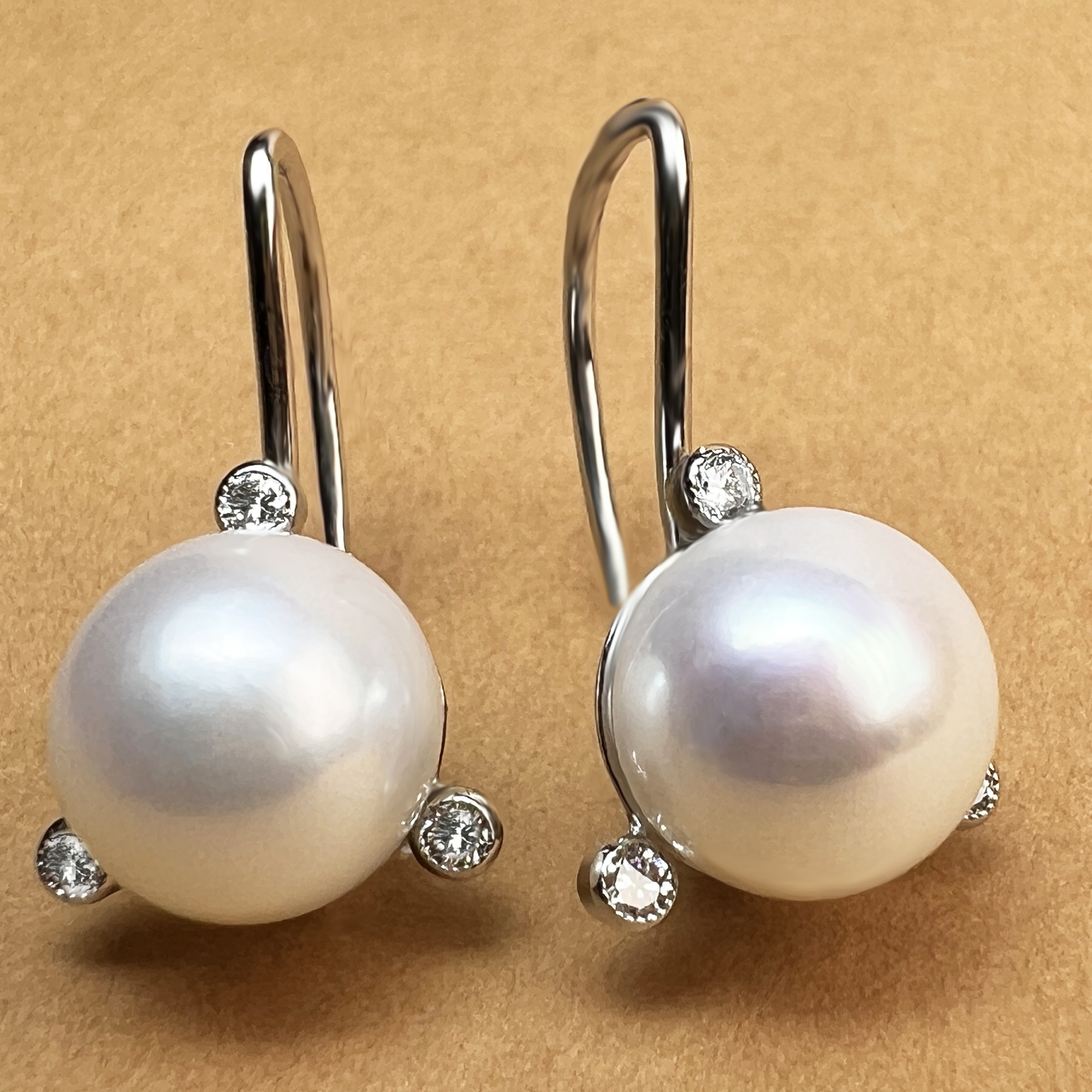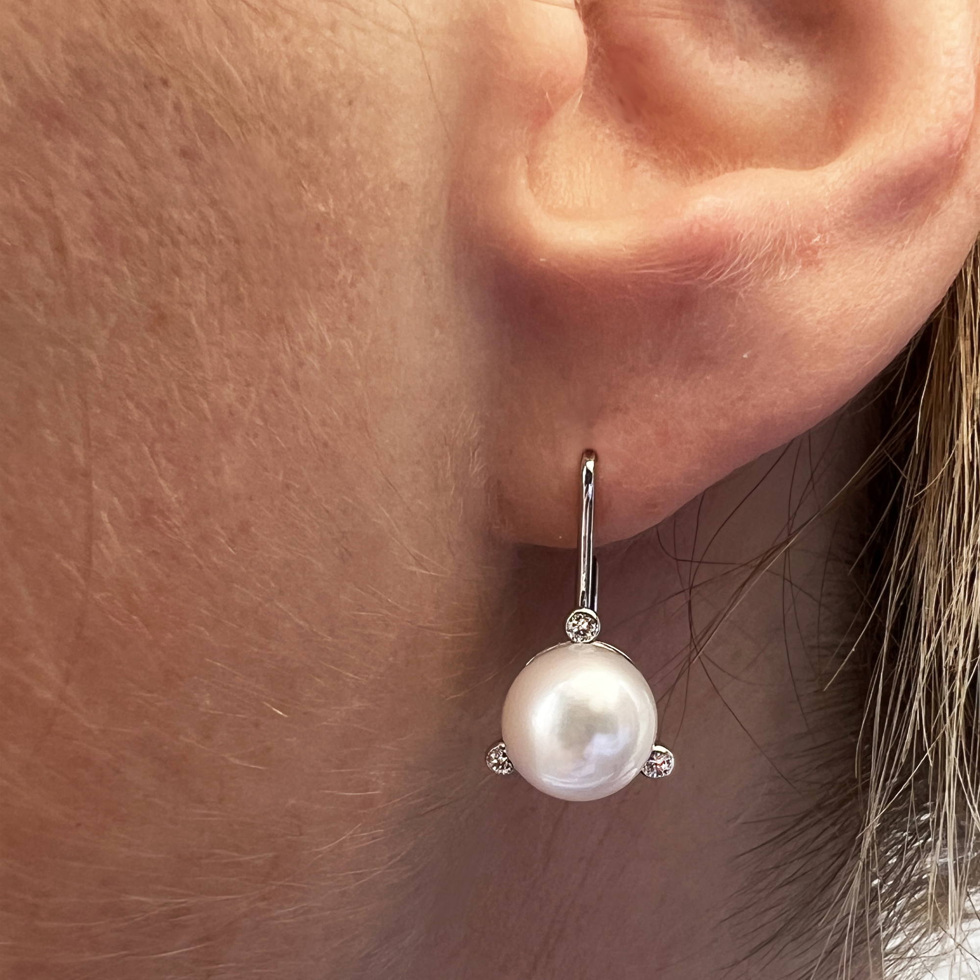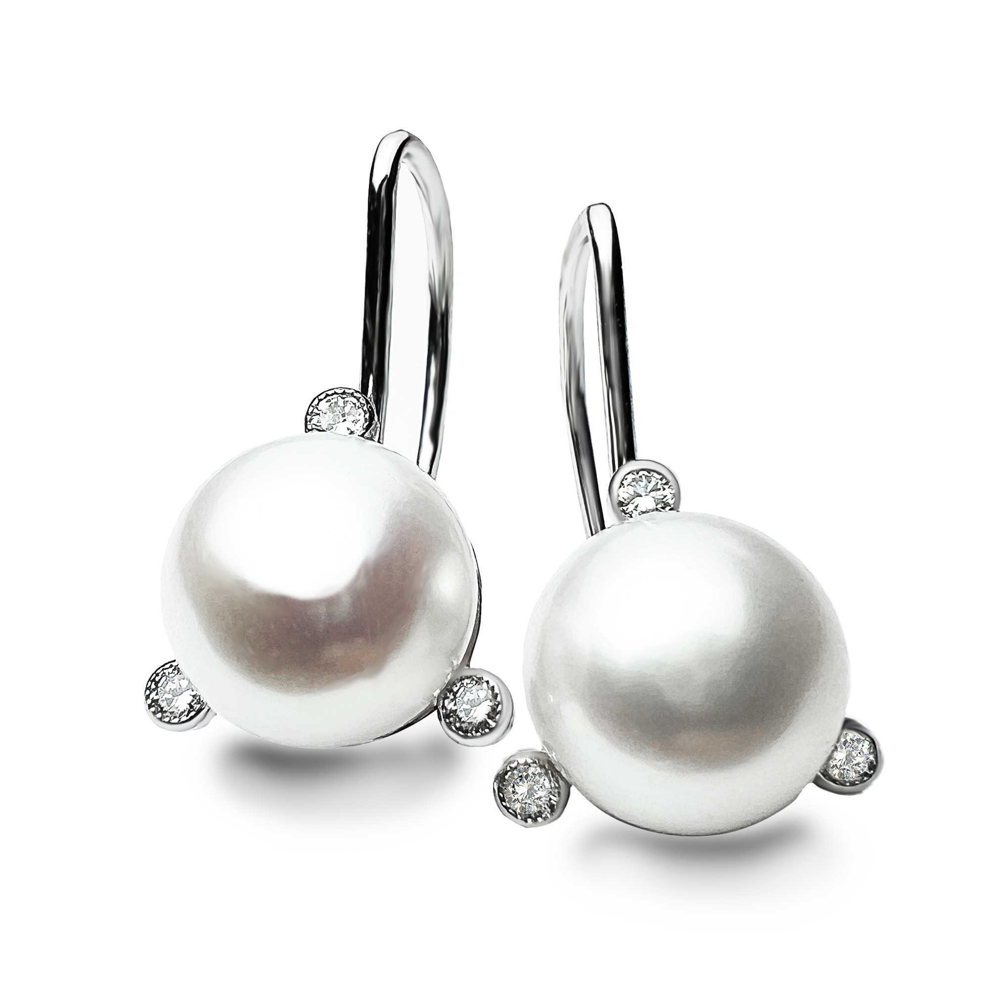 Zlaté náušnice Stuchlík se sladkovodní perlou a diamanty.
