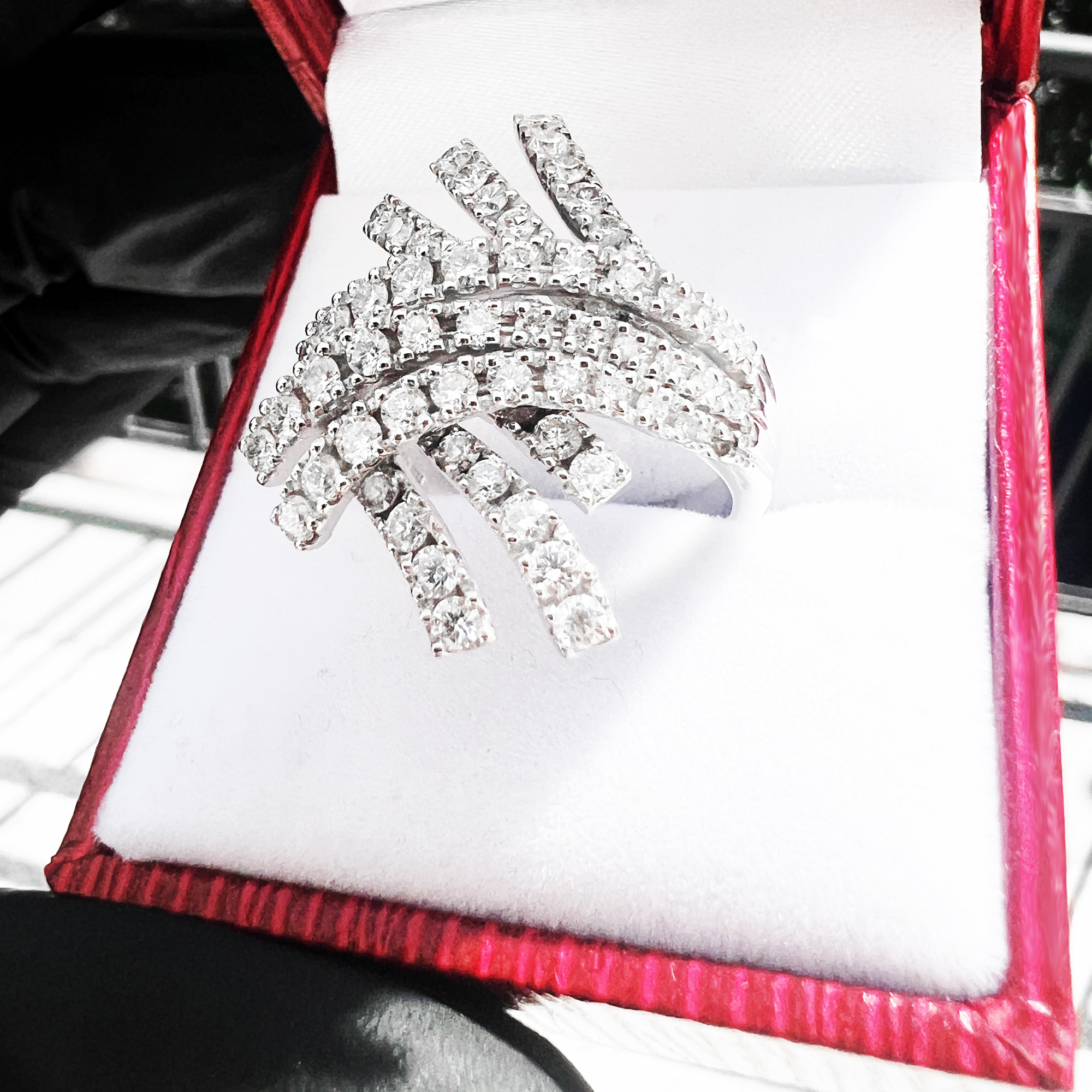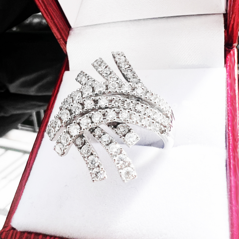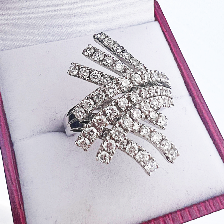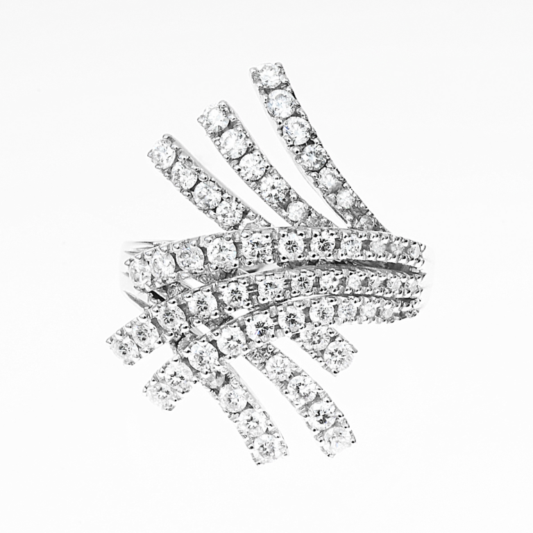 Exkluzivní jedinečný diamantový prste z bílého zlata. Jediný kus.