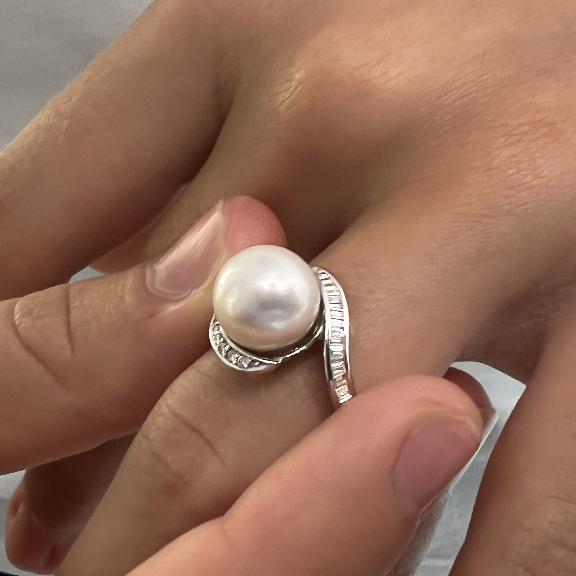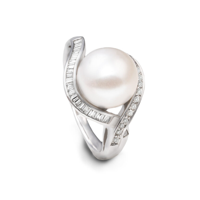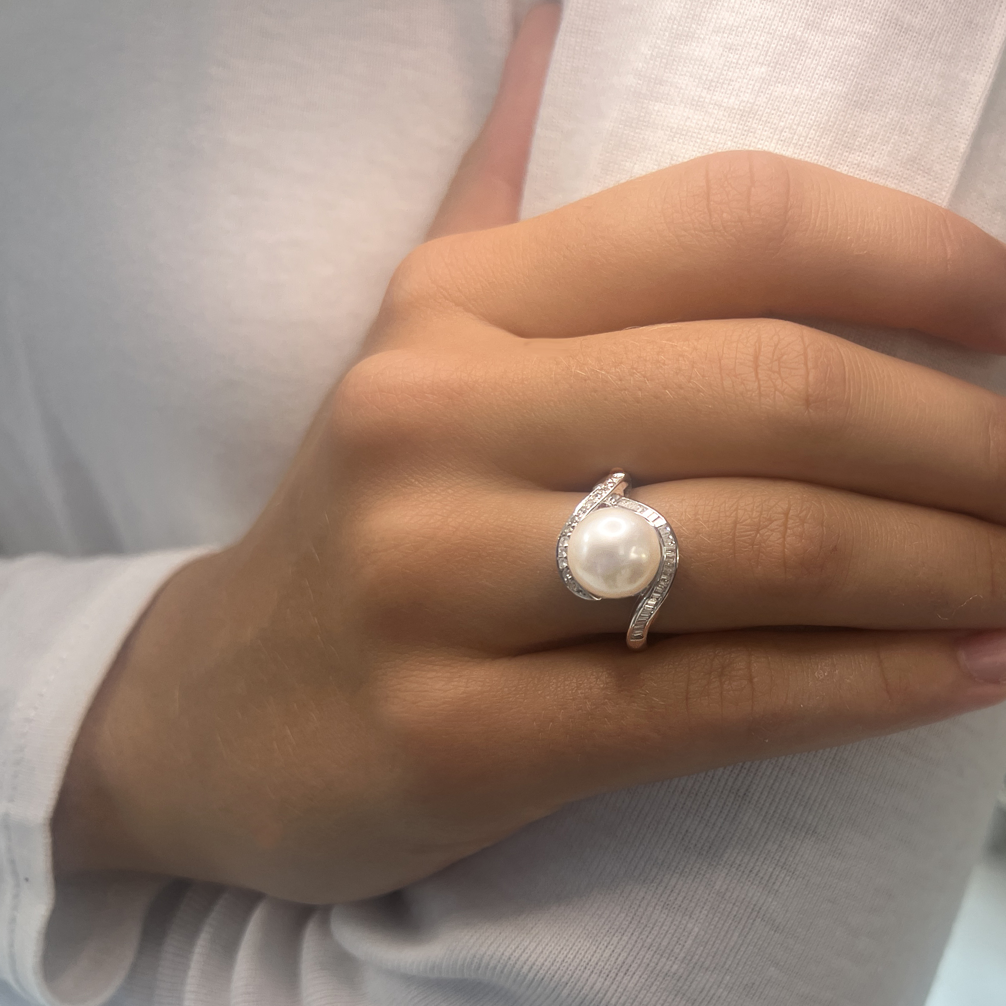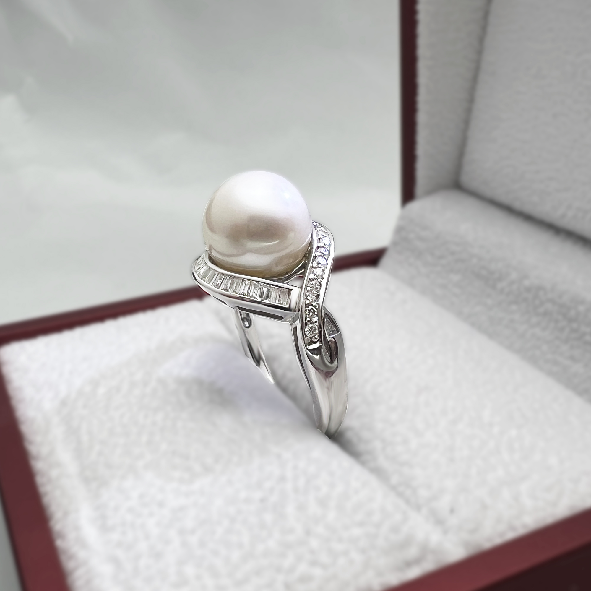 přírodní mořská perla v průměru 10 mm + přírodní diamanty o celkové hmotnosti 0.34 ct